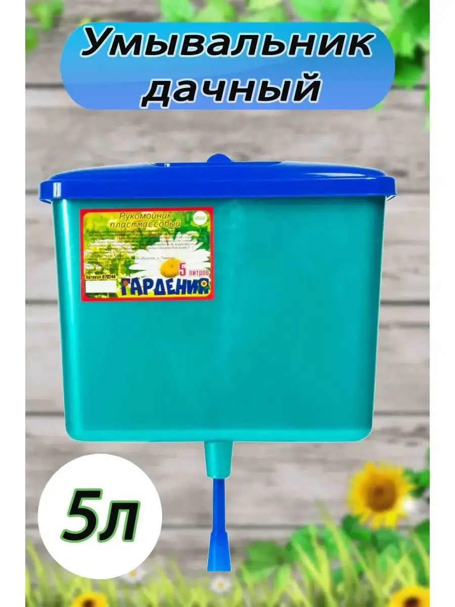 Рукомойник дачный «Гардения» — подвесной сосуд для умывания. Мойки посуды, фруктов, овощей, ягод. Используется в местах, не оборудованных водопроводом. Может устанавливаться и внутри помещений, и на улице. Конструкция снабжена крышкой, с выемкой под мыльницу и подвижным стержнем штуцером для подачи воды.