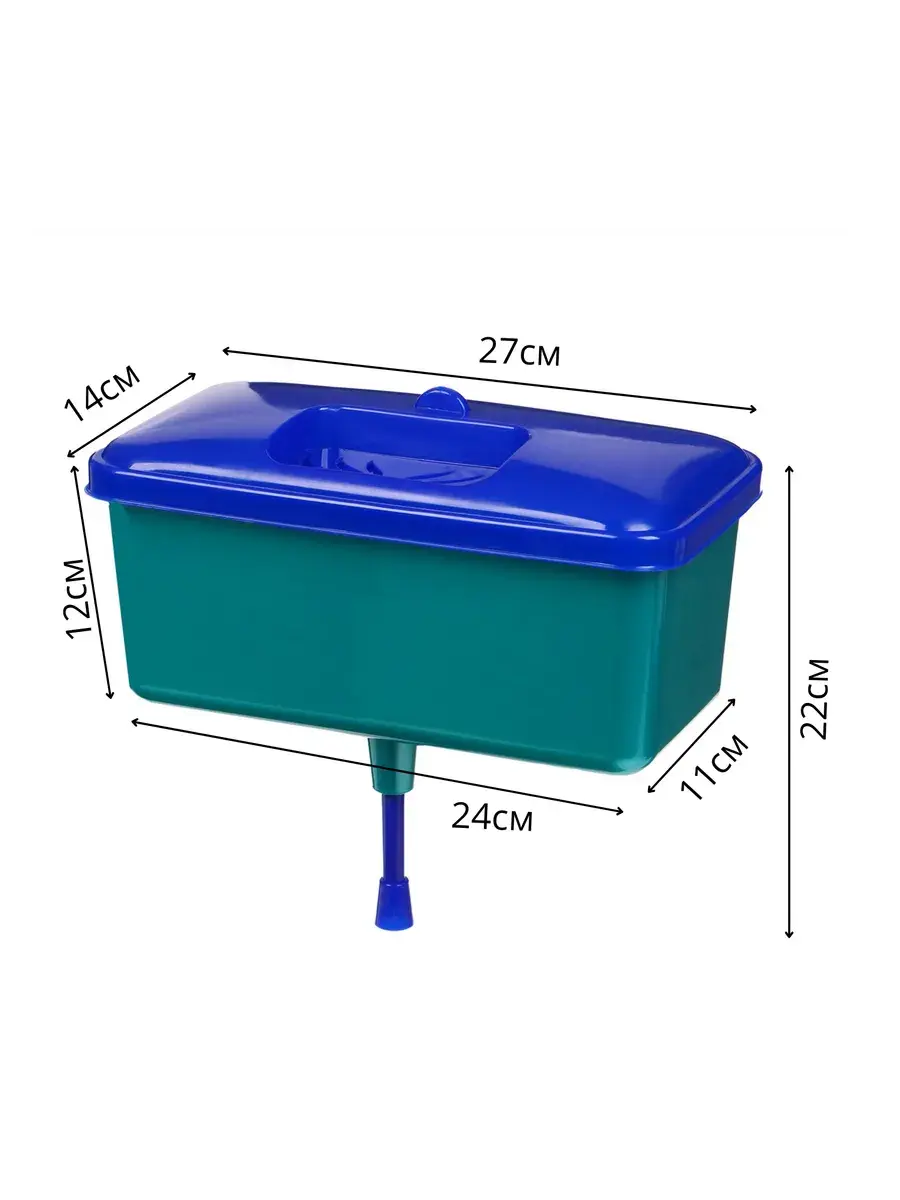 Рукомойник - умывальник объемом 3 Л для дома и дачи. Изделие предназначено для умывания, мытья рук, посуды и овощей в местах, где отсутствует центральное водоснабжение и канализация. Укомплектован крышкой для защиты воды от попадания мусора, в которой расположена емкость для мыла (мыльница). Простой, надежный и удобный в использовании умывальник изготовлен из первичного полипропилена с добавлением красителя. Это идеальный вариант для огорода, дачного участка, а также незаменимый помощник для туриста в походе или путешествии. Может устанавливаться, как внутри помещений, так и на улице. Разместить ее можно в любом удобном месте. Отличный дачный, походный, туристический, гаражный вариант рукомойника.