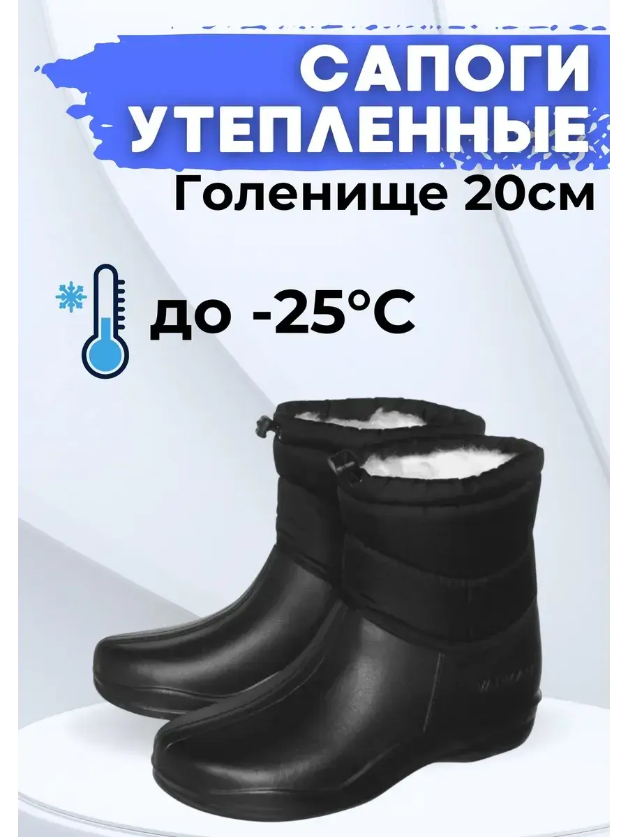 Короткие зимние сапожки из инновационного материала ЭВА отлично подойдут как для прогулок по городу в холодную погоду, так и для активного отдыха на природе. Утеплителем внутри из искусственного меха создается дополнительный комфорт и тепло даже в самый морозный день.