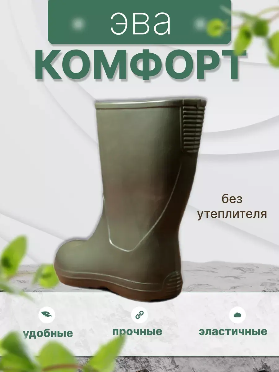 Сапоги выполнены из вспененного формованного материала ЭВА. Благодаря пористой структуре материала ЭВА сапоги имеют низкую теплоотдачу, эластичность сохранятся даже при низких температурах. Сапоги водонепроницаемы, имеют минимальный вес — 600 грамм. Модель может быть изготовлена в других цветах.