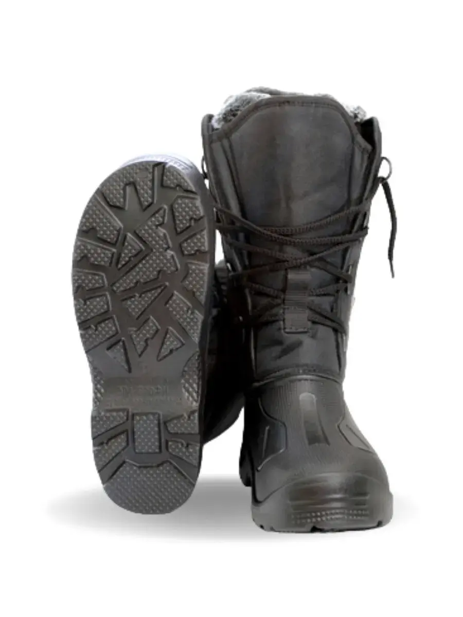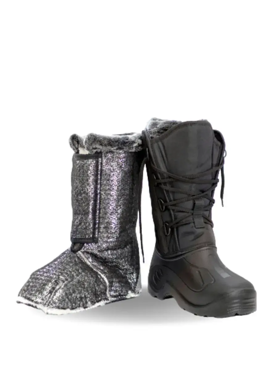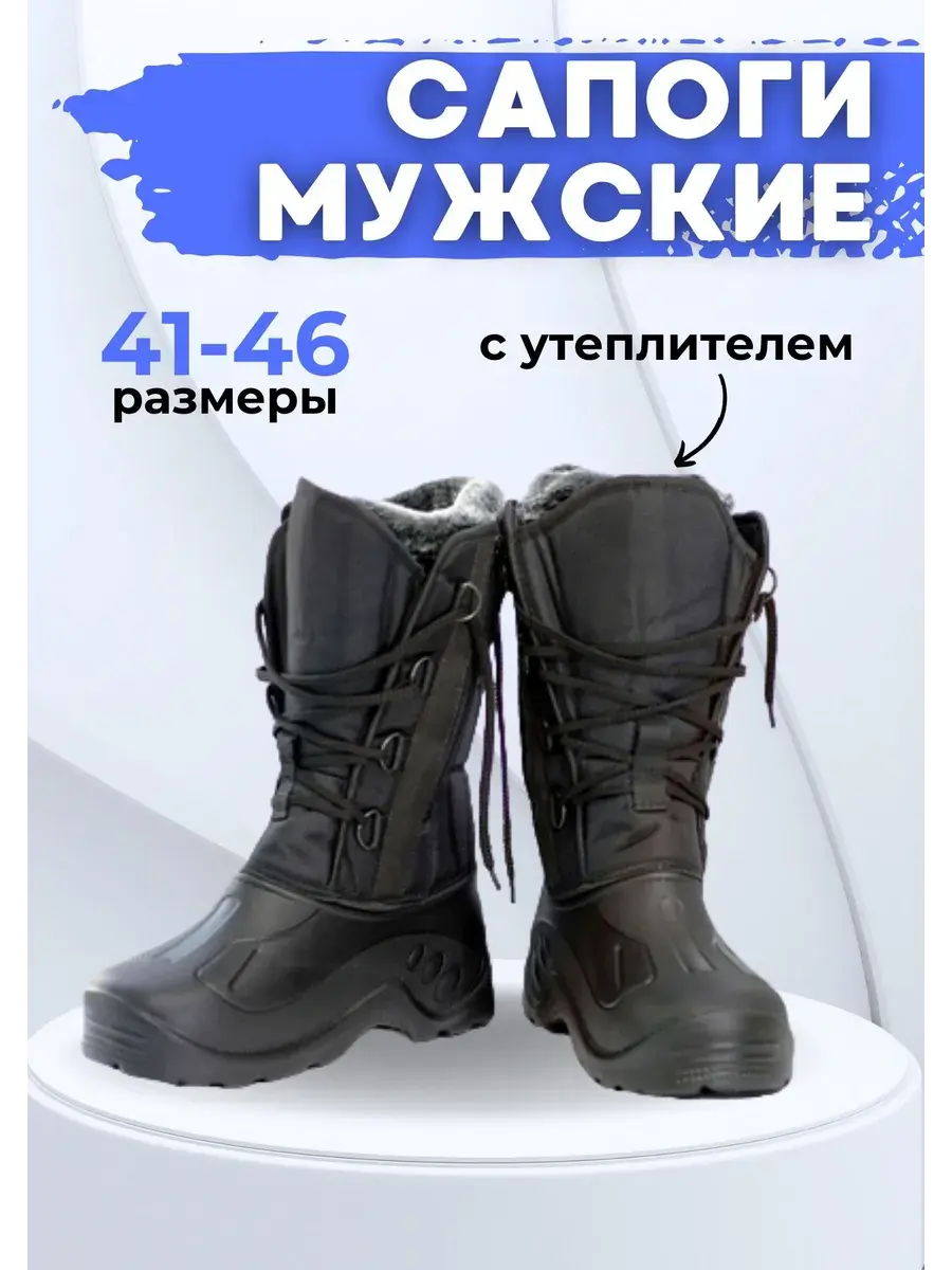 Сапоги мужские предназначены для носки в зимнее время года. Комфортное тепло сохраняется до -40 градусов. Сапоги представляют собой комбинированную модель, изготовленную на основе галоши из ЭВА, верх изготовлен из водоотталкивающей ткани, триплированной поролоном, комплектуется съемным фольгированным утеплителем из искусственного меха с декоративной вставкой.