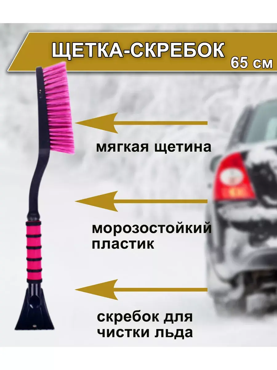 Щетка автомобильная для очистки машины от снега и льда со скребком 65см. Рукоять и скребок выполнены из прочного морозостойкого пластика. Скребок с легкостью избавит вас от наледи на лобовом стекле. Щетка для чистки снега на машине не накаляется на морозе, а благодаря анатомической форме, не скользит и удобно лежит в руке! Вы комфортно храните щетку вдоль сидения водителя, она всегда под рукой. Не царапает, проверено более сотней автолюбителей! Щетка для машины или автомобиля от снега мягкая. Шетка для снега автомобильная.