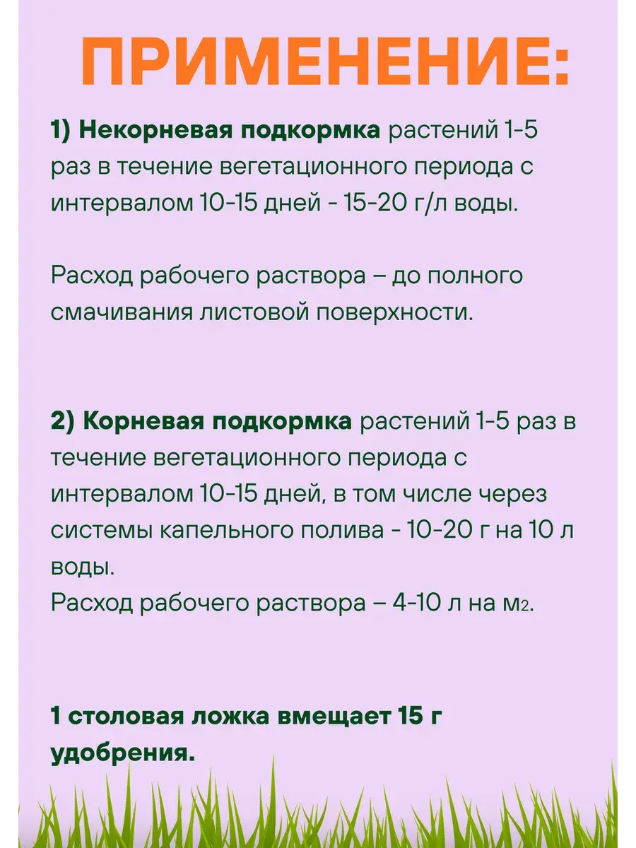 Формула разработана специально для поддержки вегетации овощей, плодово-ягодных и декоративных культур. Раствор готовится просто — порошок быстро растворяется в воде и подходит как для полива под корень, так и для обработки по листу. Подходит для использования через капельные системы.