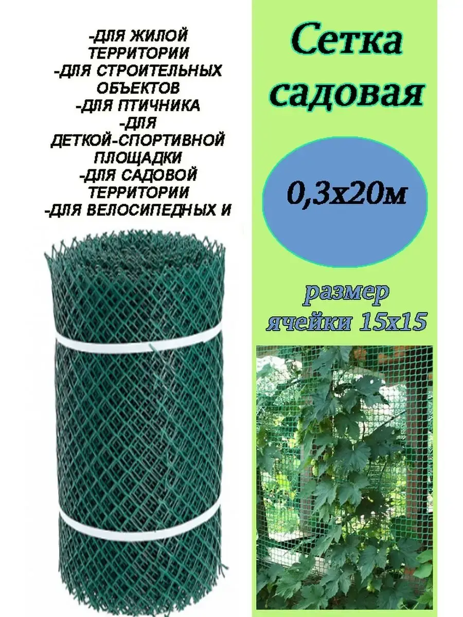 Садовая решетка для дачи и сада - стандартная пластиковая сетка зеленого цвета. Забор садовый в рулонах по 20 метров.