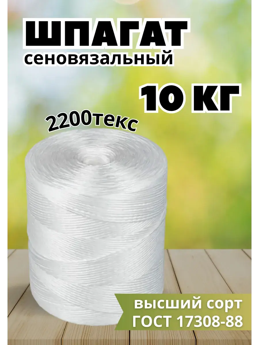 Прочный полипропиленовый шпагат для пресс подборщика, плотность 2200 текс, длина 2270м - экономичный вариант для заготовки тюков соломы и сена на автоматических установках, прессования силоса в пресс-подборщиках, для упаковки и ручкой обвязки. Так же удобен в использовании для тепличных хозяйств, в рукоделии . Прочный полипропиленовый шпагат сеновязальный - изготовленный методом скручивания нескольких волокон в одну нить, экономичный вариант для заготовки тюков соломы и сена на автоматических установках, прессования силоса в пресс-подборщиках, для упаковки, ручкой обвязки, подвязывания растений. Имеет широкий спектр применения, востребован во многих областях производства, агропромышленного комплекса, сферы услуг, используется в народном, домашнем и сельском хозяйстве, садоводстве, огородничестве, строительстве и промышленности. Отличается высокой износостойкостью, прочностью, не подвержен гниению, устойчив к истиранию, перегибам и влиянию агрессивных сред. Для агропроизводителей необходимый атрибут, используется для упаковки тюков с сеном и соломой. Канат вязальный для сена применяется как веревка хозяйственная в бытовых целях и для работы в саду. Пригодится шпагат в бобинах для подвязки томатов, помидор, огурцов, овощей, плетущихся цветов, винограда и других высокорослых растений, обвязки скошенной травы, упаковки картонных коробок и бумажных пакетов. Применяется для изготовления изделий в быту, рыболовстве, в разных видах рукоделия, флористике, дизайне и декоре как толстая нить полипропиленовая, строительная лента для ремонта, обвязки стройматериалов, трос, шнур декоративный. Бечевка, жгут для рукоделия используется как материал, для поделок, плетения, мочалок, идеально подходит для творчества. Шпагат полипропиленовый сеновязальный 2200ТЕКС (веревка) белый, из первичного сырья, высокопрочный, не подвержен изломам, влагостойкий, устойчивый к изгибам, экологичный. Длина 2400 метра (+/-100м).