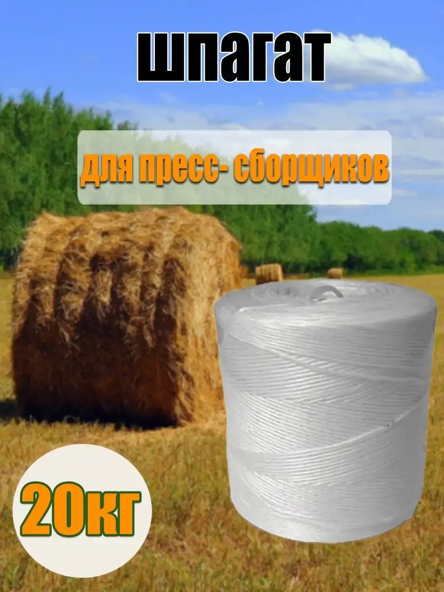 Прочный полипропиленовый шпагат для пресс подборщика, плотность 2200 текс, длина 2270м - экономичный вариант для заготовки тюков соломы и сена на автоматических установках, прессования силоса в пресс-подборщиках, для упаковки и ручкой обвязки. Так же удобен в использовании для тепличных хозяйств, в рукоделии . Прочный полипропиленовый шпагат сеновязальный - изготовленный методом скручивания нескольких волокон в одну нить, экономичный вариант для заготовки тюков соломы и сена на автоматических установках, прессования силоса в пресс-подборщиках, для упаковки, ручкой обвязки, подвязывания растений. Имеет широкий спектр применения, востребован во многих областях производства, агропромышленного комплекса, сферы услуг, используется в народном, домашнем и сельском хозяйстве, садоводстве, огородничестве, строительстве и промышленности. Отличается высокой износостойкостью, прочностью, не подвержен гниению, устойчив к истиранию, перегибам и влиянию агрессивных сред. Для агропроизводителей необходимый атрибут, используется для упаковки тюков с сеном и соломой. Канат вязальный для сена применяется как веревка хозяйственная в бытовых целях и для работы в саду. Пригодится шпагат в бобинах для подвязки томатов, помидор, огурцов, овощей, плетущихся цветов, винограда и других высокорослых растений, обвязки скошенной травы, упаковки картонных коробок и бумажных пакетов. Применяется для изготовления изделий в быту, рыболовстве, в разных видах рукоделия, флористике, дизайне и декоре как толстая нить полипропиленовая, строительная лента для ремонта, обвязки стройматериалов, трос, шнур декоративный. Бечевка, жгут для рукоделия используется как материал, для поделок, плетения, мочалок, идеально подходит для творчества. Шпагат полипропиленовый сеновязальный 2200ТЕКС (веревка) белый, из первичного сырья, высокопрочный, не подвержен изломам, влагостойкий, устойчивый к изгибам, экологичный. Длина 2400 метра (+/-100м).
