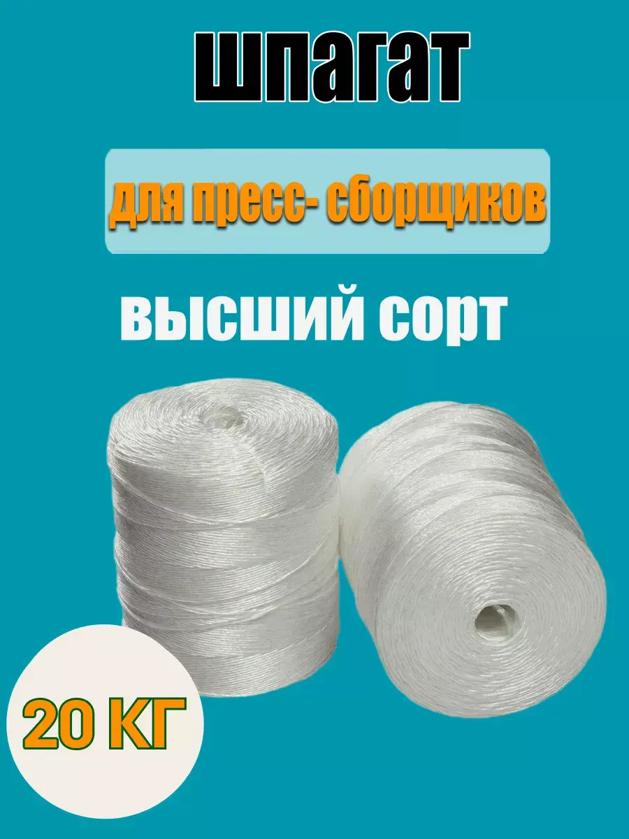 Прочный полипропиленовый шпагат для пресс подборщика, плотность 2200 текс, длина 2270м - экономичный вариант для заготовки тюков соломы и сена на автоматических установках, прессования силоса в пресс-подборщиках, для упаковки и ручкой обвязки. Так же удобен в использовании для тепличных хозяйств, в рукоделии . Прочный полипропиленовый шпагат сеновязальный - изготовленный методом скручивания нескольких волокон в одну нить, экономичный вариант для заготовки тюков соломы и сена на автоматических установках, прессования силоса в пресс-подборщиках, для упаковки, ручкой обвязки, подвязывания растений. Имеет широкий спектр применения, востребован во многих областях производства, агропромышленного комплекса, сферы услуг, используется в народном, домашнем и сельском хозяйстве, садоводстве, огородничестве, строительстве и промышленности. Отличается высокой износостойкостью, прочностью, не подвержен гниению, устойчив к истиранию, перегибам и влиянию агрессивных сред. Для агропроизводителей необходимый атрибут, используется для упаковки тюков с сеном и соломой. Канат вязальный для сена применяется как веревка хозяйственная в бытовых целях и для работы в саду. Пригодится шпагат в бобинах для подвязки томатов, помидор, огурцов, овощей, плетущихся цветов, винограда и других высокорослых растений, обвязки скошенной травы, упаковки картонных коробок и бумажных пакетов. Применяется для изготовления изделий в быту, рыболовстве, в разных видах рукоделия, флористике, дизайне и декоре как толстая нить полипропиленовая, строительная лента для ремонта, обвязки стройматериалов, трос, шнур декоративный. Бечевка, жгут для рукоделия используется как материал, для поделок, плетения, мочалок, идеально подходит для творчества. Шпагат полипропиленовый сеновязальный 2200ТЕКС (веревка) белый, из первичного сырья, высокопрочный, не подвержен изломам, влагостойкий, устойчивый к изгибам, экологичный. Длина 2400 метра (+/-100м).