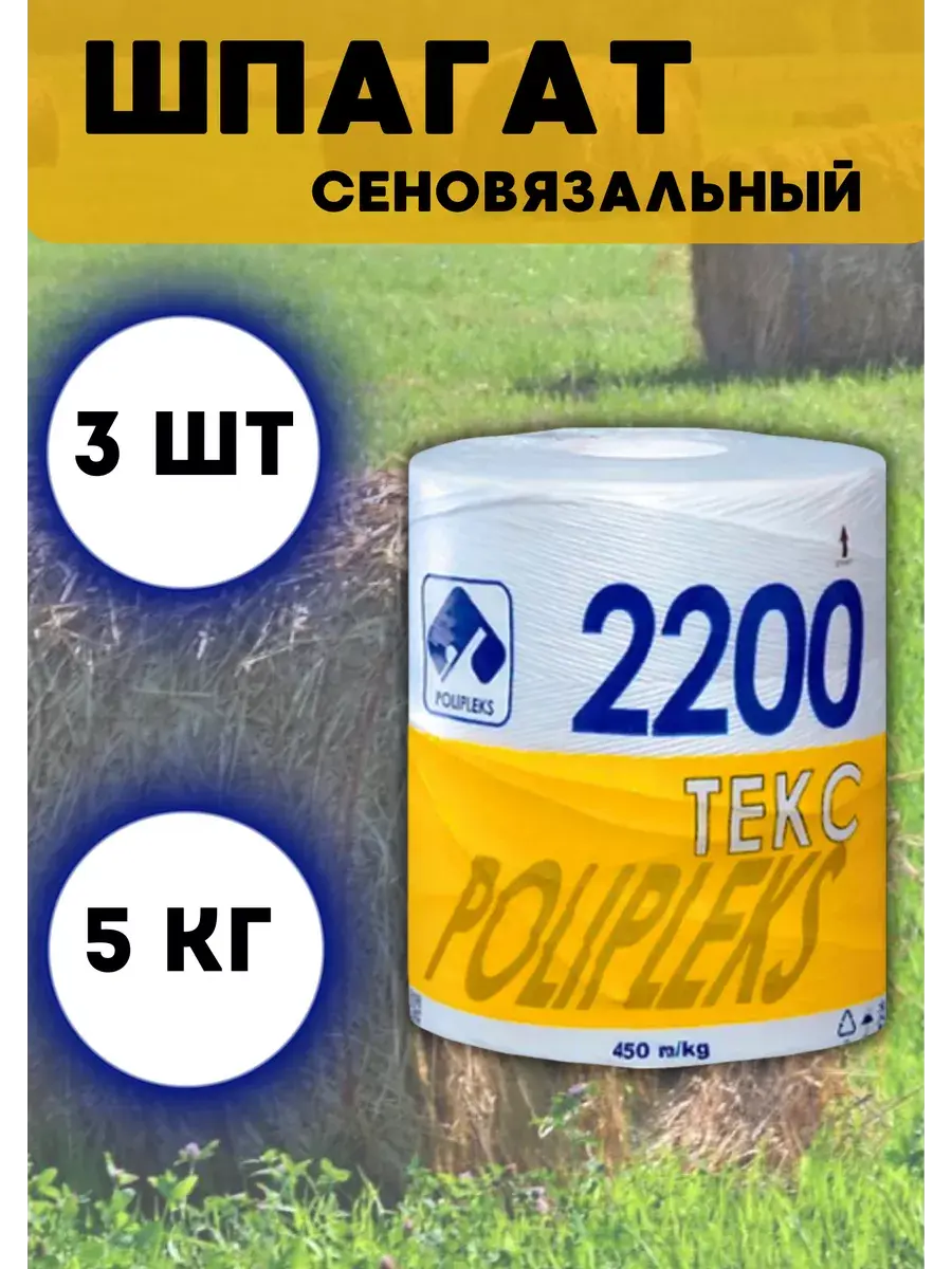 Шпагат полипропиленовый сеновязальный ТЕКС 2200 - это качественный материал, идеально подходящий для различных сельскохозяйственных и упаковочных нужд. С его линейной плотностью 2200 ТЕКС этот шпагат хозяйственный обеспечивает надежность и высокую прочность. С отклонением фактической плотности от номинальной +/-10%, разрывной нагрузкой не менее 98кг и удлинением при разрыве не менее 9,4%, этот шпагат гарантирует долговечность и надежность в использовании. Количество кручений на 1 м не менее 30, что способствует улучшенной устойчивости и удобству при использовании. Каждая бобина весит около 5 кг +/- 200 г, обеспечивая удобство при транспортировке и хранении. Этот шпагат идеально подходит для фиксации сена, упаковки товаров или других сельскохозяйственных задач. Шпагат 2200 ТЕКС сеновязальный, тепличный, полипропиленовый (веревка) белый, из первичного сырья, высокопрочный, не подвержен изломам, влагостойкий, устойчивый к изгибам, экологичный. Отлично подойдет для упаковки, транспортировки тяжелых грузов, продуктов питания, вязания стогов сена, для бытовых и хозяйственных нужд, для творчества. Длина 2300 метра (+/-100м).