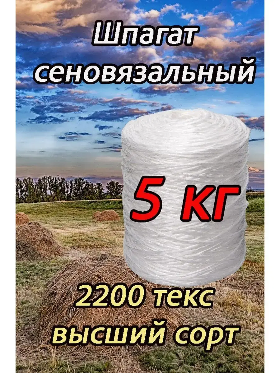 Прочный полипропиленовый шпагат для пресс подборщика, плотность 2200 текс, длина 2270м - экономичный вариант для заготовки тюков соломы и сена на автоматических установках, прессования силоса в пресс-подборщиках, для упаковки и ручкой обвязки. Так же удобен в использовании для тепличных хозяйств, в рукоделии . Прочный полипропиленовый шпагат сеновязальный - изготовленный методом скручивания нескольких волокон в одну нить, экономичный вариант для заготовки тюков соломы и сена на автоматических установках, прессования силоса в пресс-подборщиках, для упаковки, ручкой обвязки, подвязывания растений. Имеет широкий спектр применения, востребован во многих областях производства, агропромышленного комплекса, сферы услуг, используется в народном, домашнем и сельском хозяйстве, садоводстве, огородничестве, строительстве и промышленности. Отличается высокой износостойкостью, прочностью, не подвержен гниению, устойчив к истиранию, перегибам и влиянию агрессивных сред. Для агропроизводителей необходимый атрибут, используется для упаковки тюков с сеном и соломой. Канат вязальный для сена применяется как веревка хозяйственная в бытовых целях и для работы в саду. Пригодится шпагат в бобинах для подвязки томатов, помидор, огурцов, овощей, плетущихся цветов, винограда и других высокорослых растений, обвязки скошенной травы, упаковки картонных коробок и бумажных пакетов. Применяется для изготовления изделий в быту, рыболовстве, в разных видах рукоделия, флористике, дизайне и декоре как толстая нить полипропиленовая, строительная лента для ремонта, обвязки стройматериалов, трос, шнур декоративный. Бечевка, жгут для рукоделия используется как материал, для поделок, плетения, мочалок, идеально подходит для творчества. Шпагат полипропиленовый сеновязальный 2200ТЕКС (веревка) белый, из первичного сырья, высокопрочный, не подвержен изломам, влагостойкий, устойчивый к изгибам, экологичный. Длина 2400 метра (+/-100м).