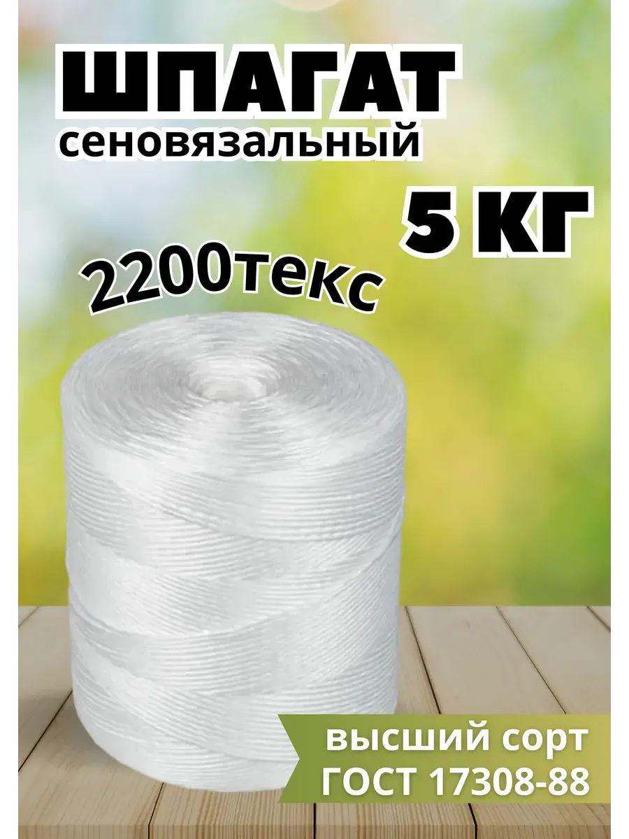 Прочный полипропиленовый шпагат для пресс подборщика, плотность 2200 текс, длина 2270м - экономичный вариант для заготовки тюков соломы и сена на автоматических установках, прессования силоса в пресс-подборщиках, для упаковки и ручкой обвязки. Так же удобен в использовании для тепличных хозяйств, в рукоделии . Прочный полипропиленовый шпагат сеновязальный - изготовленный методом скручивания нескольких волокон в одну нить, экономичный вариант для заготовки тюков соломы и сена на автоматических установках, прессования силоса в пресс-подборщиках, для упаковки, ручкой обвязки, подвязывания растений. Имеет широкий спектр применения, востребован во многих областях производства, агропромышленного комплекса, сферы услуг, используется в народном, домашнем и сельском хозяйстве, садоводстве, огородничестве, строительстве и промышленности. Отличается высокой износостойкостью, прочностью, не подвержен гниению, устойчив к истиранию, перегибам и влиянию агрессивных сред. Для агропроизводителей необходимый атрибут, используется для упаковки тюков с сеном и соломой. Канат вязальный для сена применяется как веревка хозяйственная в бытовых целях и для работы в саду. Пригодится шпагат в бобинах для подвязки томатов, помидор, огурцов, овощей, плетущихся цветов, винограда и других высокорослых растений, обвязки скошенной травы, упаковки картонных коробок и бумажных пакетов. Применяется для изготовления изделий в быту, рыболовстве, в разных видах рукоделия, флористике, дизайне и декоре как толстая нить полипропиленовая, строительная лента для ремонта, обвязки стройматериалов, трос, шнур декоративный. Бечевка, жгут для рукоделия используется как материал, для поделок, плетения, мочалок, идеально подходит для творчества. Шпагат полипропиленовый сеновязальный 2200ТЕКС (веревка) белый, из первичного сырья, высокопрочный, не подвержен изломам, влагостойкий, устойчивый к изгибам, экологичный. Длина 2400 метра (+/-100м).
