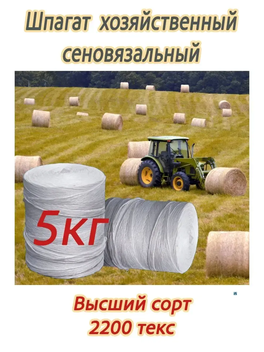 Прочный полипропиленовый шпагат для пресс подборщика, плотность 2200 текс, длина 2270м - экономичный вариант для заготовки тюков соломы и сена на автоматических установках, прессования силоса в пресс-подборщиках, для упаковки и ручкой обвязки. Так же удобен в использовании для тепличных хозяйств, в рукоделии . Прочный полипропиленовый шпагат сеновязальный - изготовленный методом скручивания нескольких волокон в одну нить, экономичный вариант для заготовки тюков соломы и сена на автоматических установках, прессования силоса в пресс-подборщиках, для упаковки, ручкой обвязки, подвязывания растений. Имеет широкий спектр применения, востребован во многих областях производства, агропромышленного комплекса, сферы услуг, используется в народном, домашнем и сельском хозяйстве, садоводстве, огородничестве, строительстве и промышленности. Отличается высокой износостойкостью, прочностью, не подвержен гниению, устойчив к истиранию, перегибам и влиянию агрессивных сред. Для агропроизводителей необходимый атрибут, используется для упаковки тюков с сеном и соломой. Канат вязальный для сена применяется как веревка хозяйственная в бытовых целях и для работы в саду. Пригодится шпагат в бобинах для подвязки томатов, помидор, огурцов, овощей, плетущихся цветов, винограда и других высокорослых растений, обвязки скошенной травы, упаковки картонных коробок и бумажных пакетов. Применяется для изготовления изделий в быту, рыболовстве, в разных видах рукоделия, флористике, дизайне и декоре как толстая нить полипропиленовая, строительная лента для ремонта, обвязки стройматериалов, трос, шнур декоративный. Бечевка, жгут для рукоделия используется как материал, для поделок, плетения, мочалок, идеально подходит для творчества. Шпагат полипропиленовый сеновязальный 2200ТЕКС (веревка) белый, из первичного сырья, высокопрочный, не подвержен изломам, влагостойкий, устойчивый к изгибам, экологичный. Длина 2400 метра (+/-100м).