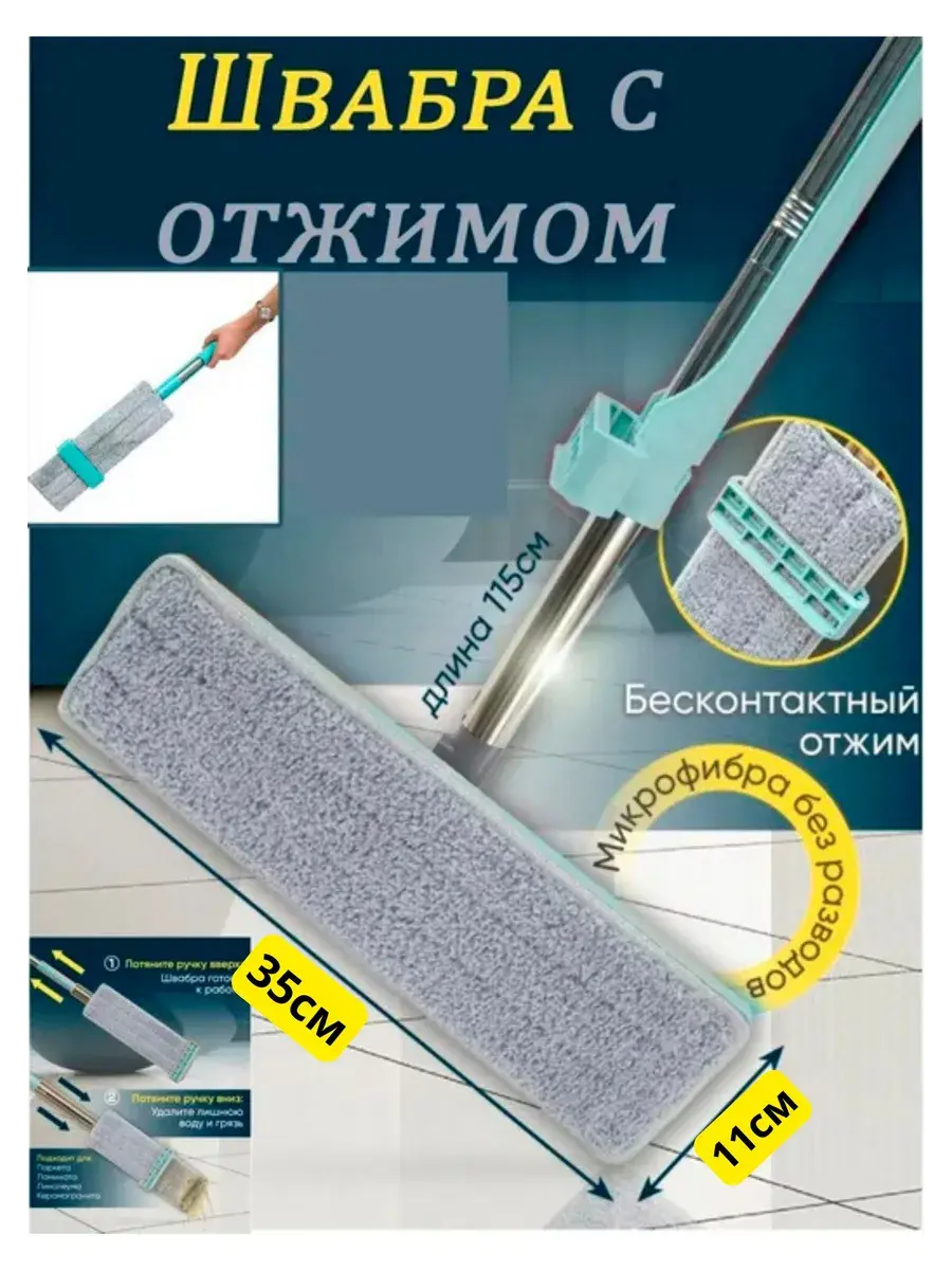 Хозяйственная швабра от нашего магазина сделает вашу уборку ещё быстрее и приятнее! Главная особенность умной швабры, делающая мытьё полов с ней таким простом - бесконтактная уборка: не нужно носить за собой ведро или касаться грязной насадки швабры. Моющая швабра с бесконтактным отжимом маневренная: так вы сможете очистить даже самые труднодоступные места. В том числе и вертикальные поверхности! У домашней швабры удобная пластиковая длинная рукоятка и тряпка из микрофибры. Отлично впитывает жидкости большая широкая насадка из микрофибры, которая подойдёт и для чистки пыли, и для линолеума. Также есть функция отжима. Приобретите универсальное приспособление для дома, кухни, гостиной, столовой. Удобная швабра отлично подойдёт и в качестве подарка себе, маме и любой хозяйке!