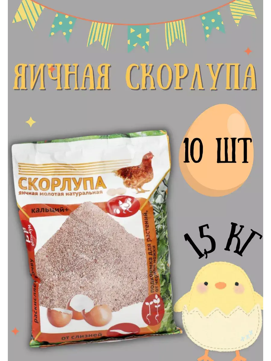 Скорлупа яичная молотая натуральная - это продукт, который получают путем измельчения яичной скорлупы. Она используется в качестве кормовой добавки для птиц, которая помогает улучшить их здоровье и укрепить кости. Если куры несушки испытывают нехватку кальция, они начинают нести мягкие яйца или перестают нестись совсем, начинают с удовольствием поедать скорлупу собственных яиц. Чтобы этого избежать, нужно добавлять в рацион кур кальций. Самое распространенное народное средство подкормка для куриц несушек – яичная скорлупа. Подкормка поможет укреплению костей и суставов, что особенно важно для птиц, находящихся в период интенсивного производства яиц или роста. Польза подкормки кур и цыплят яичной скорлупой заключается в следующем: поступление в организм птиц важнейших микро- и макроэлементов, в т. ч. и магния, поддерживающих активный рост и здоровье организма; обеспечение птиц легкоусвояемым кальцием; улучшение пищеварительной системы; утолщение скорлупы новых яиц; укрепление костной системы птиц, когтей и клюва; улучшение внешнего вида кур и цыплят; нормализация работы сердечно-сосудистой системы. Способ применения прост: просушенную в духовом шкафу около 5 минут при температурном режиме в 100 градусов скорлупу измельчают до состояния муки и подмешивают в комбикорм для кур. При этом в рационе птенцов она должна занимать 2% от объема пищи, то есть около 1,1-1,3 г в сутки. Куры-несушки нуждаются в большем количестве кальция, так как он постоянно расходуется на формирование оболочки новых откладываемых ими яиц. Не всегда корм для кур-несушек для яйценоскости может обеспечить курицу всеми необходимыми микроэлементами. Поэтому для данной категории кур подкормка в виде измельченной яичной скорлупы должна составлять около 5% от общего рациона, то есть около 3,5 г в сутки. В период интенсивной яйцекладки норму можно увеличить до 10 г в сутки.