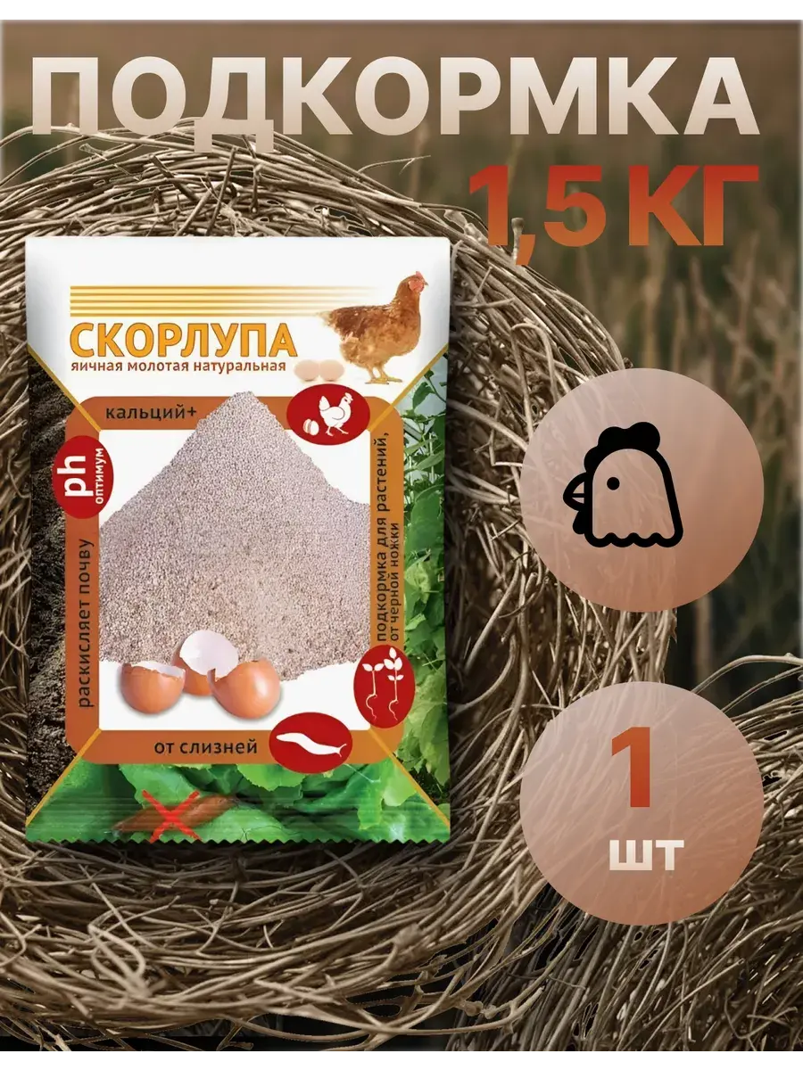 Скорлупа яичная молотая натуральная - это продукт, который получают путем измельчения яичной скорлупы. Она используется в качестве кормовой добавки для птиц, которая помогает улучшить их здоровье и укрепить кости. Если куры несушки испытывают нехватку кальция, они начинают нести мягкие яйца или перестают нестись совсем, начинают с удовольствием поедать скорлупу собственных яиц. Чтобы этого избежать, нужно добавлять в рацион кур кальций. Самое распространенное народное средство подкормка для куриц несушек – яичная скорлупа. Подкормка поможет укреплению костей и суставов, что особенно важно для птиц, находящихся в период интенсивного производства яиц или роста. Польза подкормки кур и цыплят яичной скорлупой заключается в следующем: поступление в организм птиц важнейших микро- и макроэлементов, в т. ч. и магния, поддерживающих активный рост и здоровье организма; обеспечение птиц легкоусвояемым кальцием; улучшение пищеварительной системы; утолщение скорлупы новых яиц; укрепление костной системы птиц, когтей и клюва; улучшение внешнего вида кур и цыплят; нормализация работы сердечно-сосудистой системы. Способ применения прост: просушенную в духовом шкафу около 5 минут при температурном режиме в 100 градусов скорлупу измельчают до состояния муки и подмешивают в комбикорм для кур. При этом в рационе птенцов она должна занимать 2% от объема пищи, то есть около 1,1-1,3 г в сутки. Куры-несушки нуждаются в большем количестве кальция, так как он постоянно расходуется на формирование оболочки новых откладываемых ими яиц. Не всегда корм для кур-несушек для яйценоскости может обеспечить курицу всеми необходимыми микроэлементами. Поэтому для данной категории кур подкормка в виде измельченной яичной скорлупы должна составлять около 5% от общего рациона, то есть около 3,5 г в сутки. В период интенсивной яйцекладки норму можно увеличить до 10 г в сутки.