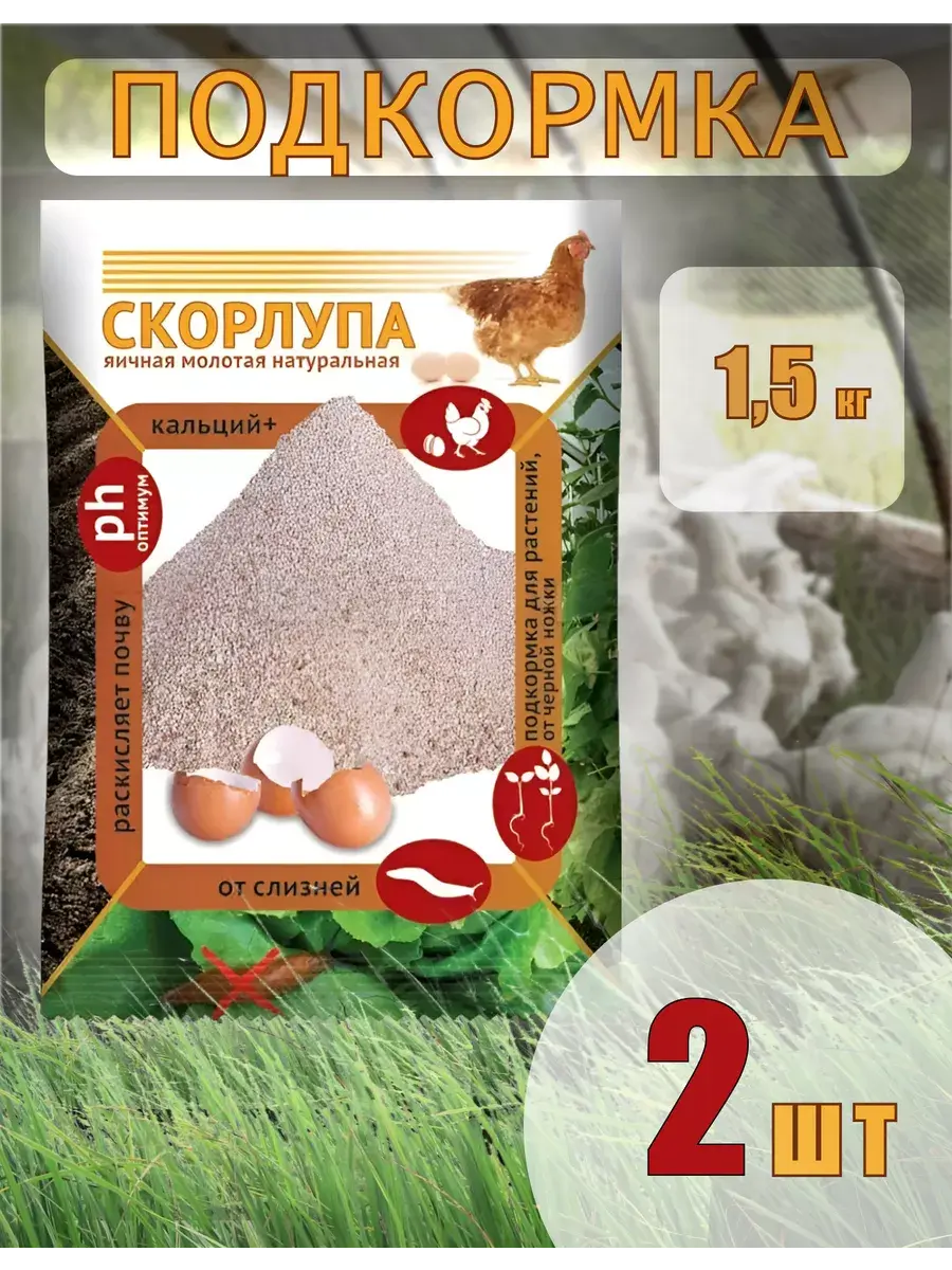 Скорлупа яичная молотая натуральная - это продукт, который получают путем измельчения яичной скорлупы. Она используется в качестве кормовой добавки для птиц, которая помогает улучшить их здоровье и укрепить кости. Если куры несушки испытывают нехватку кальция, они начинают нести мягкие яйца или перестают нестись совсем, начинают с удовольствием поедать скорлупу собственных яиц. Чтобы этого избежать, нужно добавлять в рацион кур кальций. Самое распространенное народное средство подкормка для куриц несушек – яичная скорлупа. Подкормка поможет укреплению костей и суставов, что особенно важно для птиц, находящихся в период интенсивного производства яиц или роста. Польза подкормки кур и цыплят яичной скорлупой заключается в следующем: поступление в организм птиц важнейших микро- и макроэлементов, в т. ч. и магния, поддерживающих активный рост и здоровье организма; обеспечение птиц легкоусвояемым кальцием; улучшение пищеварительной системы; утолщение скорлупы новых яиц; укрепление костной системы птиц, когтей и клюва; улучшение внешнего вида кур и цыплят; нормализация работы сердечно-сосудистой системы. Способ применения прост: просушенную в духовом шкафу около 5 минут при температурном режиме в 100 градусов скорлупу измельчают до состояния муки и подмешивают в комбикорм для кур. При этом в рационе птенцов она должна занимать 2% от объема пищи, то есть около 1,1-1,3 г в сутки. Куры-несушки нуждаются в большем количестве кальция, так как он постоянно расходуется на формирование оболочки новых откладываемых ими яиц. Не всегда корм для кур-несушек для яйценоскости может обеспечить курицу всеми необходимыми микроэлементами. Поэтому для данной категории кур подкормка в виде измельченной яичной скорлупы должна составлять около 5% от общего рациона, то есть около 3,5 г в сутки. В период интенсивной яйцекладки норму можно увеличить до 10 г в сутки.