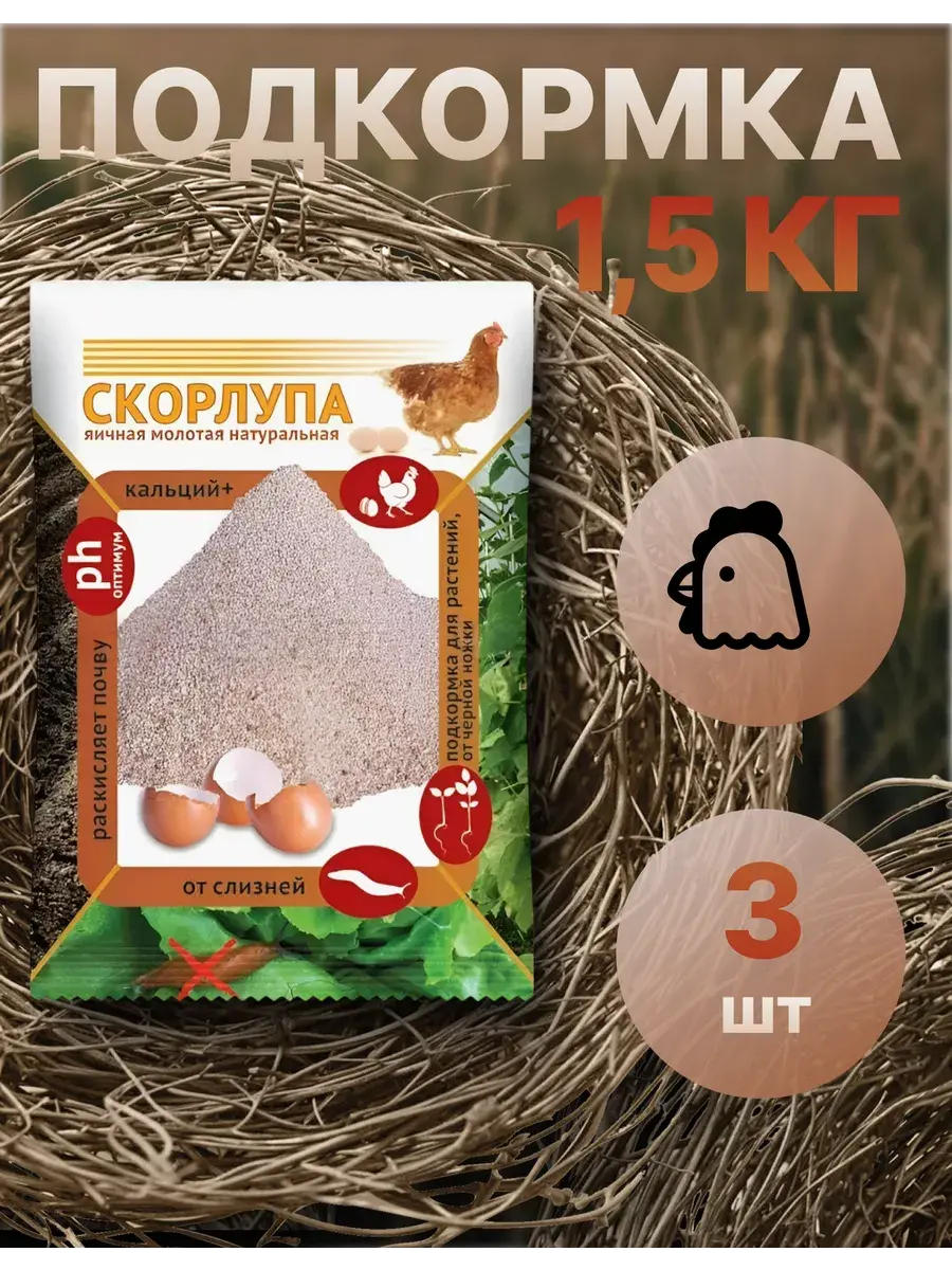 Скорлупа яичная молотая натуральная - это продукт, который получают путем измельчения яичной скорлупы. Она используется в качестве кормовой добавки для птиц, которая помогает улучшить их здоровье и укрепить кости. Если куры несушки испытывают нехватку кальция, они начинают нести мягкие яйца или перестают нестись совсем, начинают с удовольствием поедать скорлупу собственных яиц. Чтобы этого избежать, нужно добавлять в рацион кур кальций. Самое распространенное народное средство подкормка для куриц несушек – яичная скорлупа. Подкормка поможет укреплению костей и суставов, что особенно важно для птиц, находящихся в период интенсивного производства яиц или роста. Польза подкормки кур и цыплят яичной скорлупой заключается в следующем: поступление в организм птиц важнейших микро- и макроэлементов, в т. ч. и магния, поддерживающих активный рост и здоровье организма; обеспечение птиц легкоусвояемым кальцием; улучшение пищеварительной системы; утолщение скорлупы новых яиц; укрепление костной системы птиц, когтей и клюва; улучшение внешнего вида кур и цыплят; нормализация работы сердечно-сосудистой системы. Способ применения прост: просушенную в духовом шкафу около 5 минут при температурном режиме в 100 градусов скорлупу измельчают до состояния муки и подмешивают в комбикорм для кур. При этом в рационе птенцов она должна занимать 2% от объема пищи, то есть около 1,1-1,3 г в сутки. Куры-несушки нуждаются в большем количестве кальция, так как он постоянно расходуется на формирование оболочки новых откладываемых ими яиц. Не всегда корм для кур-несушек для яйценоскости может обеспечить курицу всеми необходимыми микроэлементами. Поэтому для данной категории кур подкормка в виде измельченной яичной скорлупы должна составлять около 5% от общего рациона, то есть около 3,5 г в сутки. В период интенсивной яйцекладки норму можно увеличить до 10 г в сутки.