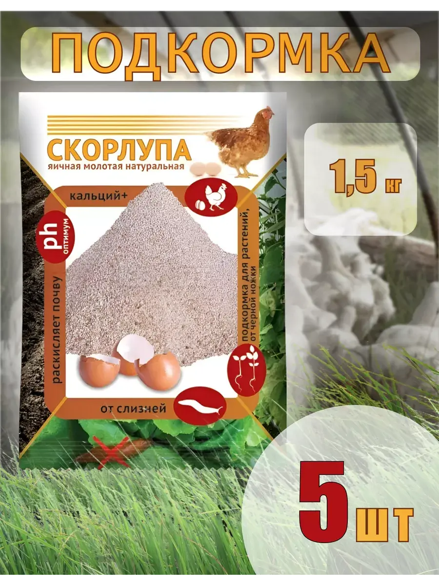 Скорлупа яичная молотая натуральная - это продукт, который получают путем измельчения яичной скорлупы. Она используется в качестве кормовой добавки для птиц, которая помогает улучшить их здоровье и укрепить кости. Если куры несушки испытывают нехватку кальция, они начинают нести мягкие яйца или перестают нестись совсем, начинают с удовольствием поедать скорлупу собственных яиц. Чтобы этого избежать, нужно добавлять в рацион кур кальций. Самое распространенное народное средство подкормка для куриц несушек – яичная скорлупа. Подкормка поможет укреплению костей и суставов, что особенно важно для птиц, находящихся в период интенсивного производства яиц или роста. Польза подкормки кур и цыплят яичной скорлупой заключается в следующем: поступление в организм птиц важнейших микро- и макроэлементов, в т. ч. и магния, поддерживающих активный рост и здоровье организма; обеспечение птиц легкоусвояемым кальцием; улучшение пищеварительной системы; утолщение скорлупы новых яиц; укрепление костной системы птиц, когтей и клюва; улучшение внешнего вида кур и цыплят; нормализация работы сердечно-сосудистой системы. Способ применения прост: просушенную в духовом шкафу около 5 минут при температурном режиме в 100 градусов скорлупу измельчают до состояния муки и подмешивают в комбикорм для кур. При этом в рационе птенцов она должна занимать 2% от объема пищи, то есть около 1,1-1,3 г в сутки. Куры-несушки нуждаются в большем количестве кальция, так как он постоянно расходуется на формирование оболочки новых откладываемых ими яиц. Не всегда корм для кур-несушек для яйценоскости может обеспечить курицу всеми необходимыми микроэлементами. Поэтому для данной категории кур подкормка в виде измельченной яичной скорлупы должна составлять около 5% от общего рациона, то есть около 3,5 г в сутки. В период интенсивной яйцекладки норму можно увеличить до 10 г в сутки.