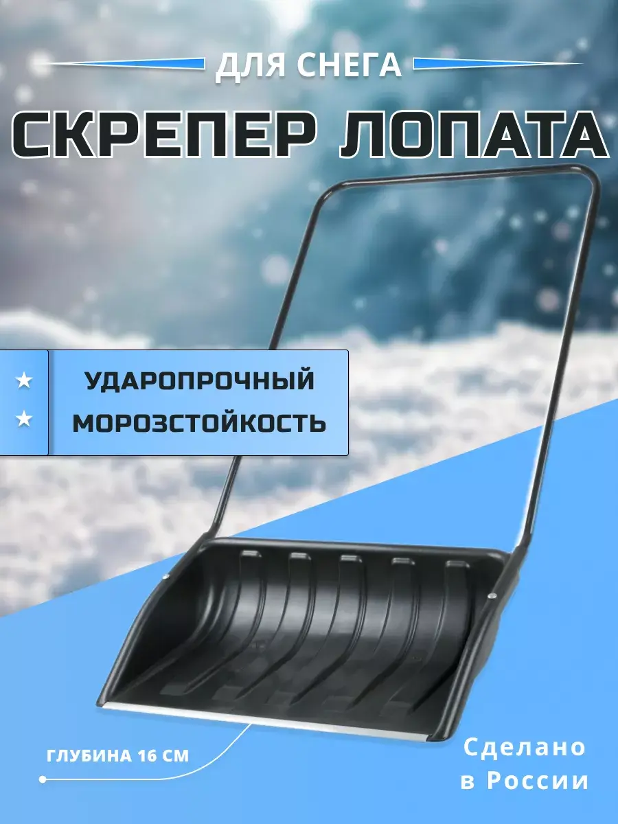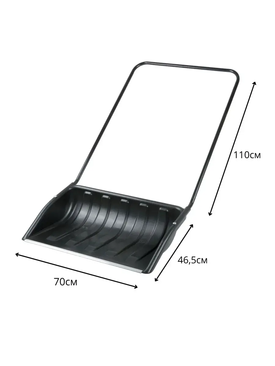 Скрепер для уборки снега является идеальным инструментом для быстрой и эффективной расчистки больших площадей. Ковш лопаты выполнен из износостойкого полипропилена и усилен металлической планкой. Длинная, металлическая ручка крепится к рабочей поверхности с помощью саморезов, делая лопату удобной и надежной. Габариты ковша: 70см ширина, 46,5см длина и 16см глубина.