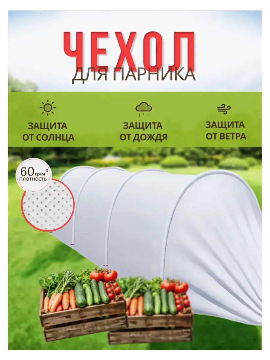 ВНИМАНИЕ!!!ДУГИ В КОМПЛЕКТЕ НЕ ИДУТ. Чехол для парника под 8 дуг, спанбонд 60 г/м², размер 3.2×10 м. Прочный чехол для парника из материала спанбонд плотностью 60 г/м² — надёжная защита ваших растений в любое время сезона. Подходит для установки на 4 дуги, идеально укрывает грядку шириной 3,2 м и длиной 10 м. Особенности:Материал: нетканый спанбонд — воздухопроницаемый, влагостойкий, устойчивый к ультрафиолету.Плотность: 60 г/м² — обеспечивает высокую защиту от перепадов температур, насекомых и осадков.Назначение: парник садовый, укрытие для овощей, зелени, рассады, клубники, цветов и других культур. Преимущества:Долговечный и многоразовый материал.Удерживает тепло и влагу, создавая благоприятный микроклимат.Легко фиксируется на дугах и удобно в использовании.Подходит для большиства видов арочных парников. Надежная защита, легкость установки и долговечность - все это делает этот чехол идеальным выбором для любого садовода или огородника.Использование теплицы для рассады для дома позволит Вам раньше начать посев, защищая растения от заморозков, сквозняков и солнечных ожогов. Спанбонд укрывной прекрасно пропускает влагу и воздух, создавая необходимый микроклимат в парнике и позволяя получить урожай на 10-12 дней раньше Укрывной материал препятствует образованию конденсата. Незаменим в большей части нашей страны при разных температурах от -5 С до +40 С Полив рассады осуществляется методом дождевания по укрывному материалу. Агроткань не разрушается под воздействием УФ-излучения и других неблагоприятных природных факторов. Так же укрывной материал для растений Спанбонд можно стирать в машине при 40С.