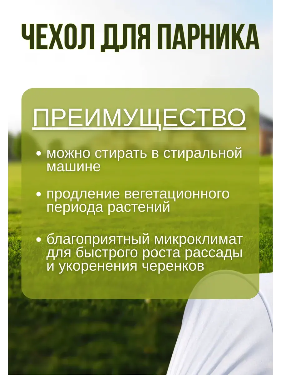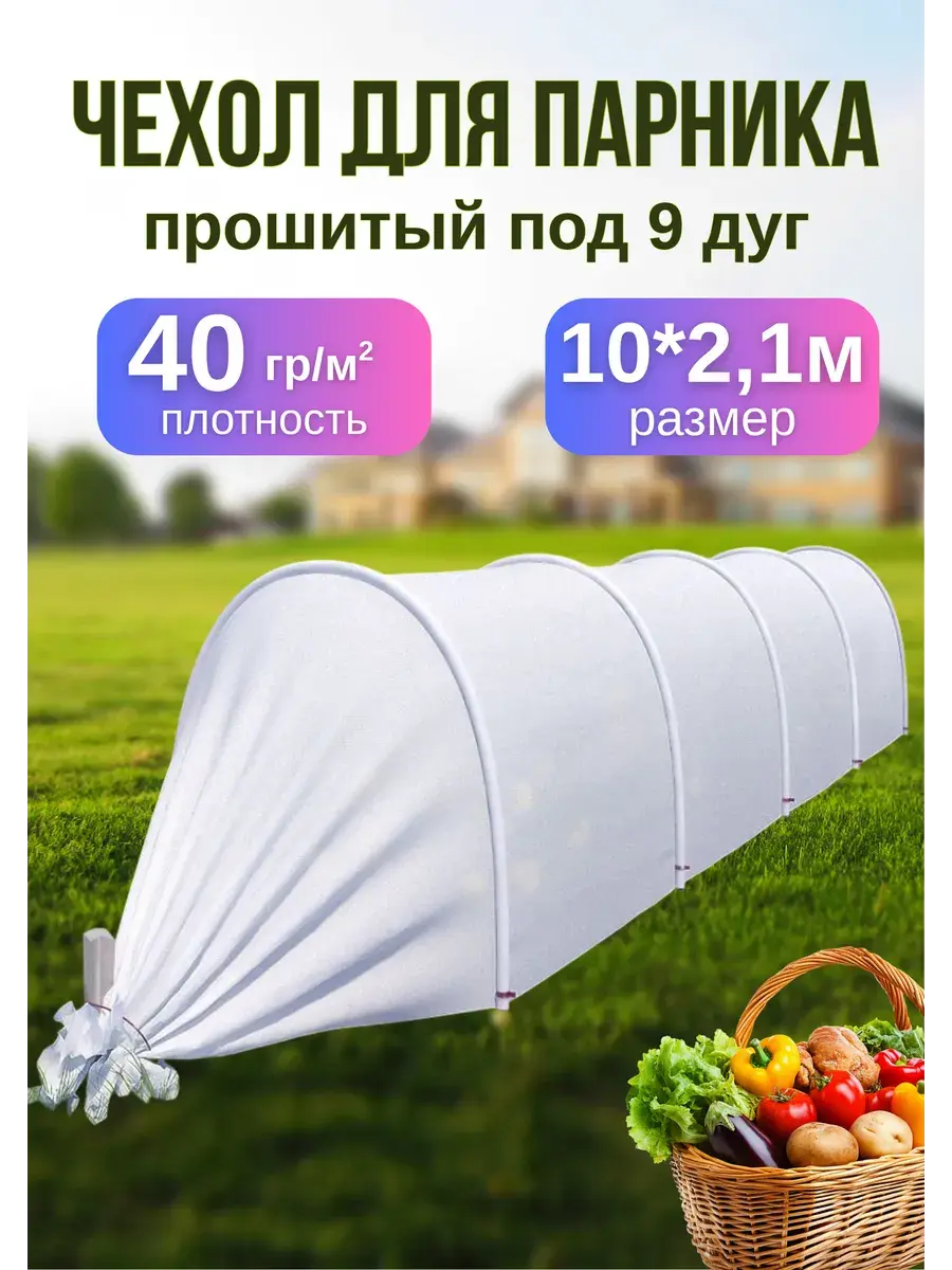 ВНИМАНИЕ!!!ДУГИ В КОМПЛЕКТЕ НЕ ИДУТ. Чехол для парника под 9 дуг, спанбонд 40 г/м², размер 2.1×10 м. Прочный чехол для парника из материала спанбонд плотностью 40 г/м² — надёжная защита ваших растений в любое время сезона. Подходит для установки на 9 дуг, идеально укрывает грядку шириной 2,1 м и длиной 10 м. Особенности:Материал: нетканый спанбонд — воздухопроницаемый, влагостойкий, устойчивый к ультрафиолету.Плотность: 40 г/м² — обеспечивает высокую защиту от перепадов температур, насекомых и осадков.Назначение: парник садовый, укрытие для овощей, зелени, рассады, клубники, цветов и других культур. Преимущества:Долговечный и многоразовый материал.Удерживает тепло и влагу, создавая благоприятный микроклимат.Легко фиксируется на дугах и удобно в использовании.Подходит для большиства видов арочных парников. Надежная защита, легкость установки и долговечность - все это делает этот чехол идеальным выбором для любого садовода или огородника.Использование теплицы для рассады для дома позволит Вам раньше начать посев, защищая растения от заморозков, сквозняков и солнечных ожогов. Спанбонд укрывной прекрасно пропускает влагу и воздух, создавая необходимый микроклимат в парнике и позволяя получить урожай на 10-12 дней раньше Укрывной материал препятствует образованию конденсата. Незаменим в большей части нашей страны при разных температурах от -5 С до +40 С Полив рассады осуществляется методом дождевания по укрывному материалу. Агроткань не разрушается под воздействием УФ-излучения и других неблагоприятных природных факторов. Так же укрывной материал для растений Спанбонд можно стирать в машине при 40С.