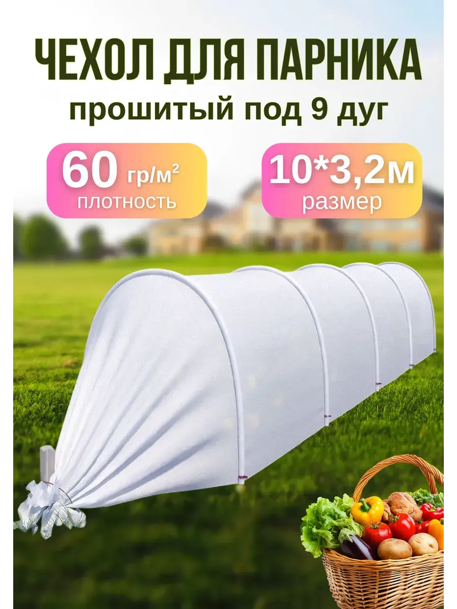 ВНИМАНИЕ!!!ДУГИ В КОМПЛЕКТЕ НЕ ИДУТ. Чехол для парника под 9 дуг, спанбонд 60 г/м², размер 3.2×10 м. Прочный чехол для парника из материала спанбонд плотностью 60 г/м² — надёжная защита ваших растений в любое время сезона. Подходит для установки на 9 дуг, идеально укрывает грядку шириной 3,2 м и длиной 10 м. Особенности:Материал: нетканый спанбонд — воздухопроницаемый, влагостойкий, устойчивый к ультрафиолету.Плотность: 60 г/м² — обеспечивает высокую защиту от перепадов температур, насекомых и осадков.Назначение: парник садовый, укрытие для овощей, зелени, рассады, клубники, цветов и других культур. Преимущества:Долговечный и многоразовый материал.Удерживает тепло и влагу, создавая благоприятный микроклимат.Легко фиксируется на дугах и удобно в использовании.Подходит для большиства видов арочных парников. Надежная защита, легкость установки и долговечность - все это делает этот чехол идеальным выбором для любого садовода или огородника.Использование теплицы для рассады для дома позволит Вам раньше начать посев, защищая растения от заморозков, сквозняков и солнечных ожогов. Спанбонд укрывной прекрасно пропускает влагу и воздух, создавая необходимый микроклимат в парнике и позволяя получить урожай на 10-12 дней раньше Укрывной материал препятствует образованию конденсата. Незаменим в большей части нашей страны при разных температурах от -5 С до +40 С Полив рассады осуществляется методом дождевания по укрывному материалу. Агроткань не разрушается под воздействием УФ-излучения и других неблагоприятных природных факторов. Так же укрывной материал для растений Спанбонд можно стирать в машине при 40С.