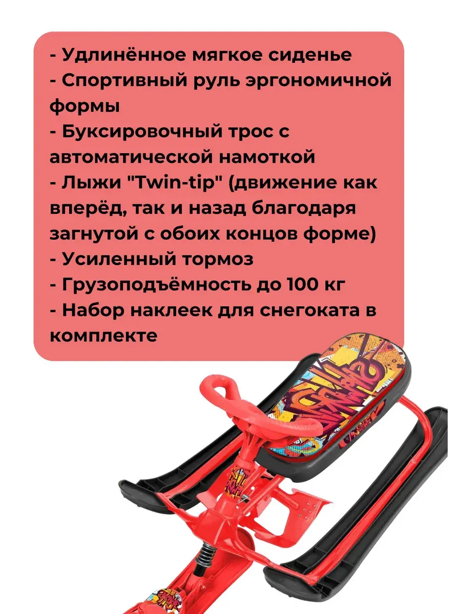 Снегокат детский - это идеальный выбор для активных зимних развлечений. Он предназначен для детей, он обеспечивает безопасность и комфорт во время катания. Снегокат оснащен удобным сиденьем, рулем для управления и прочными полозьями, которые гарантируют отличное сцепление с поверхностью. Яркий дизайн привлечет внимание и подарит массу положительных эмоций вашему ребенку.