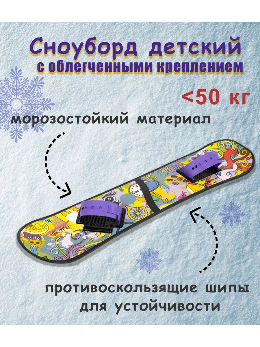 Сноуборд пластиковый Олимпик предназначен для начинающих сноубордистов возрастом от 5- лет для катания в зимний период для спуска с небольших горок и активного отдыха. Жесткие (на корпусе изделия расположены специальные крепления, необходимые для фиксации ног, гибкие передние ремни регулируются по длине пряжкой/защёлкой, для надёжной фиксации пятки имеется дополнительная накладка на задний ремень, крепление переставляются как под правую, так и под левую ведущую ногу) и облегченные крепления (нога крепится при помощи одного переднего ремня, регулируемого по длине, поэтому даже самому юному сноубордисту не составит труда быстро вставить ногу в крепление и также легко освободится после скоростного спуска) позволяют зафиксировать ноги и предназначены для повседневной обуви. Размер обуви -28-36. Предельно допустимая нагрузка - 50 кг. Сделан из морозостойкого композиционного материала и выдерживает динамические нагрузки. Ростовка сноуборда 130 см. Форма сноуборда - Directional. Прогиб сноуборда - Флэт. Размеры: 95х22.5 см. Вес изделия: 1,1 - 1,3 кг.