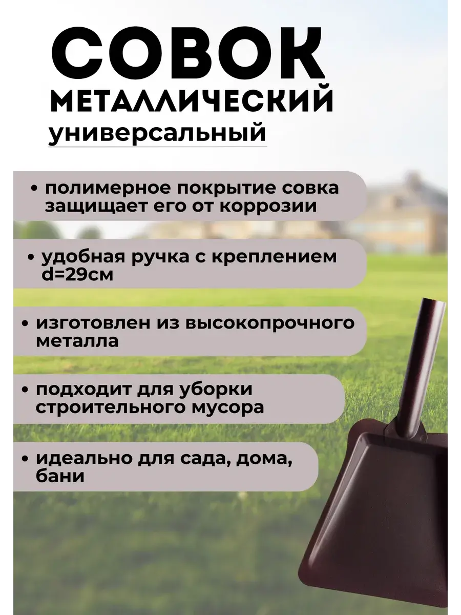 Металлический совок для мусора – незаменимый помощник в поддержании чистоты в доме, на даче или в гараже. Изготовленный из прочного металла, он отличается долговечностью и устойчивостью к повреждениям. Удобная форма и эргономичная ручка обеспечивают комфортное использование. Совок легко собирает мусор, а его гладкая поверхность упрощает очистку.