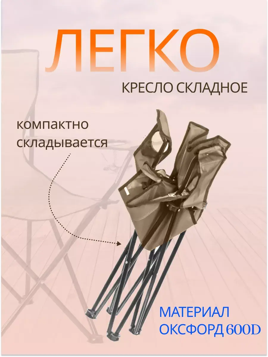 Складное туристическое кресло со спинкой и подстаканником будет идеальным снаряжением для выездов на природу, охоту, рыбалку и не только. Также походный стул прекрасно подойдет для отдыха под шезлонг для дачи и во дворе дома. Стул туристический спортивный - это находка для туризма, кемпинга и пикника. Стул складной на природу - складывается и раскладывается одним движением и занимает мало места. На рукоятке кемпингового кресла предусмотрен подстаканник для хранения напитков. Посадочное место стула с тонкой, но мягкой прослойкой придадут больше комфорта во время отдыха на свежем воздухе. сделано из износостойкого и прочного материала Oxford 600 D. Особенностью такой ткани является ее устойчивость к влаге, грязи и другим неблагоприятным погодным условиям. Надежный каркас металлического стула для пикника сделан из стальных труб выдерживает максимальную нагрузку до 120 кг. Эргономичная конструкция кресла с высокой спинкой и подлокотниками обеспечат комфортное положение тела и позволят полностью расслабиться во время отдыха на природе, летней рыбалке или охоте. Лето не за горами, заказывайте наше складное кресло, расслабьтесь и просто отдыхайте. стул складной туристический со спинкой ; кресло рыбака ; стул для рыбалки со спинкой;