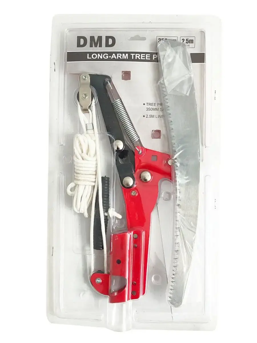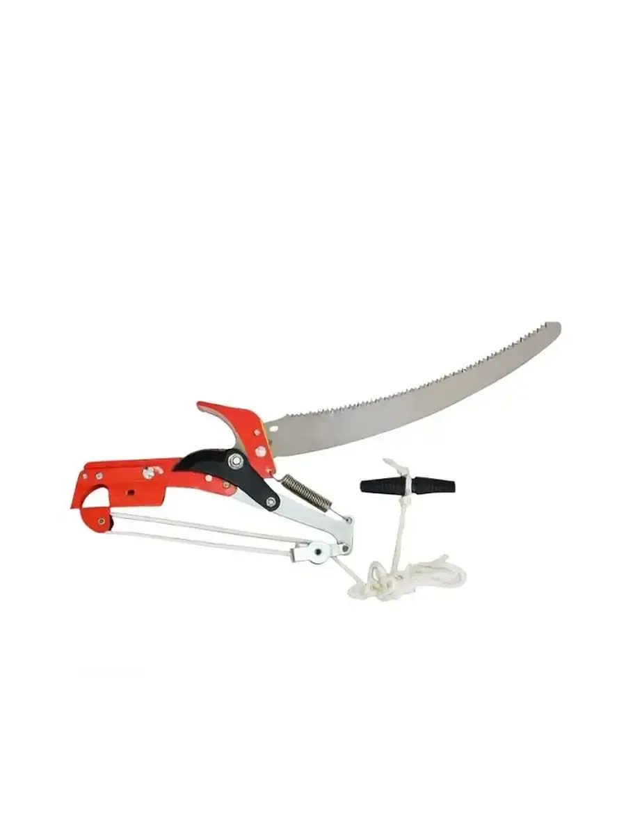 Веткорез-насадка предназначена для обрезки ветвей деревьев. Позволяет работать в труднодоступных местах, таких как верхние кроны деревьев и кустарников. Инструмент насаживают на деревянный шест, а к рычагу привязывают прочный шнур. Во время работы ветка захватывается веткорезом и при натяжении шнура срезается. Веткорез идет в комплекте со шнуром и пилой. Ручной штанговый секатор сучкорез, инструменты для сада, инструменты для огорода, садовый инструмент, для деревьев