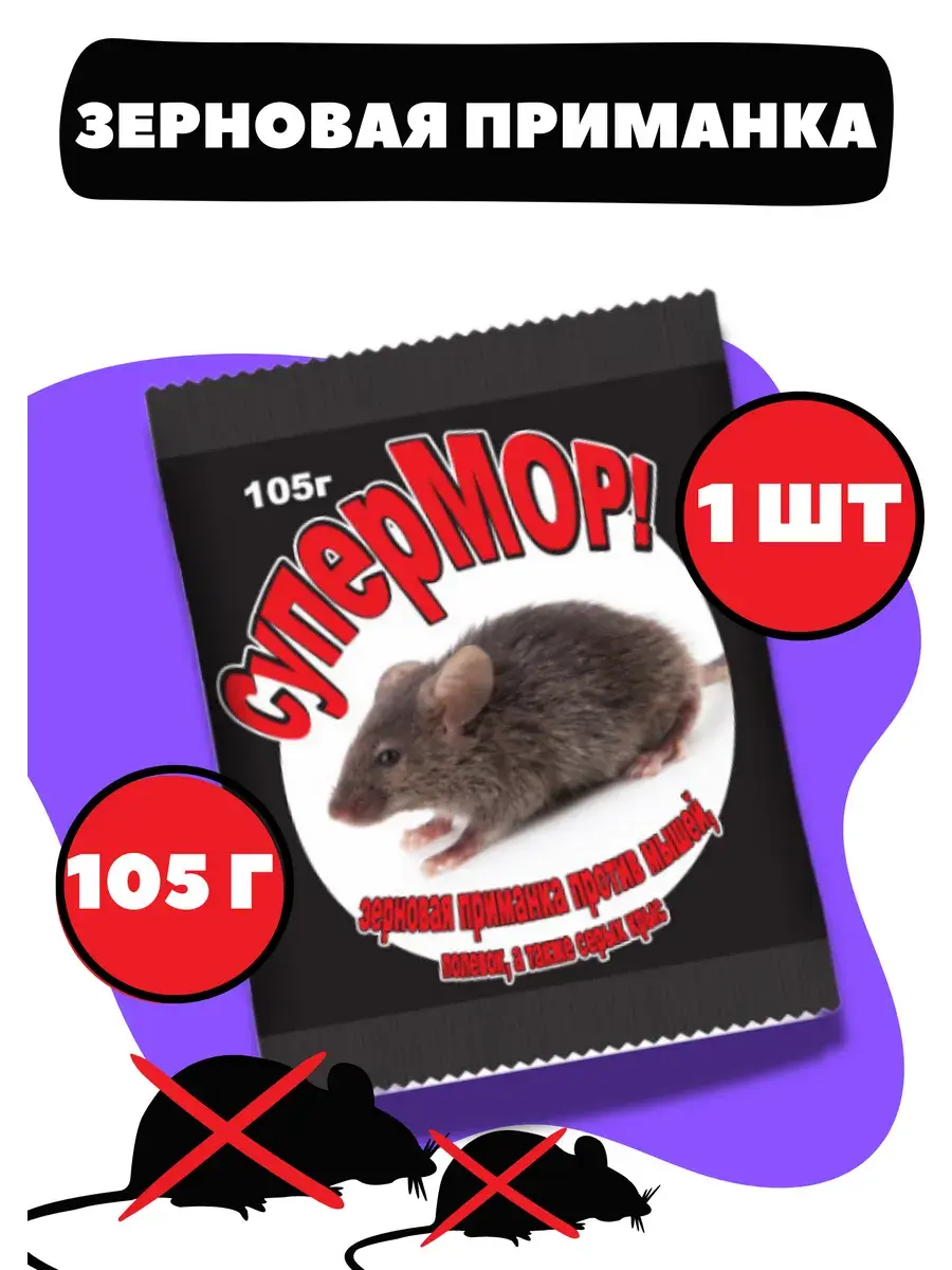«СуперМОР — зерновая приманка» — средство против мышей, полевок, а также серых крыс.