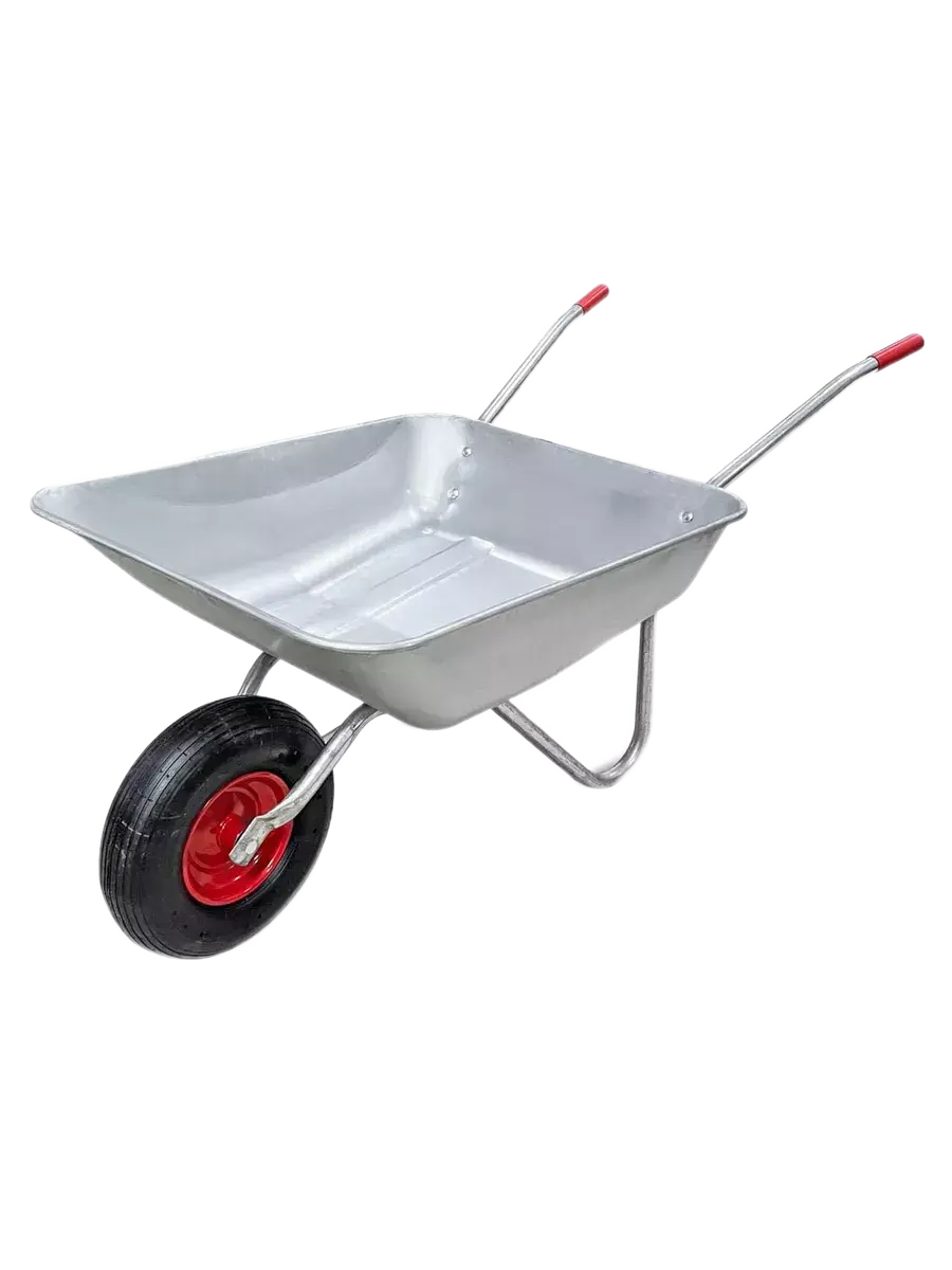 Тачка строительная садовая одноколесная с оцинкованной корытой емкостью 65 литров и грузоподъемностью до 100 кг. Тачка предназначена для тяжелых работ на строительной площадке и в саду. За счет особой конструктивной формы тачка выдерживает большие нагрузки (до 100кг) . Разборная конструкция позволяет экономить место в доме, гараже, даче при ненадобности использования тачки. Обладает высокой прочностью. Прослужит долгие годы.