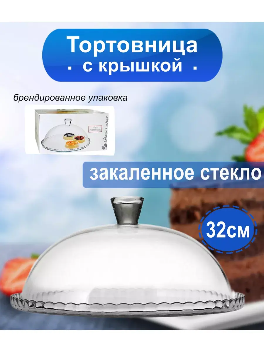 Стеклянное блюдо с крышкой бренда Pasabahce. Диаметр тортовницы 322 мм. Высота купола (без ручки) 118 мм. Прозрачное блюдо изготовлено из натрий кальций силикатного стекла. Тортовница прекрасно подойдет для сервировки праздничного стола. Блюдо можно использовать для подачи тортов и куличей, пирожных и кексов, фруктов и овощей, сыра и мясных деликатесов, нарезки и блинов, желе и печенья, конфет и прочих десертов. Круглое блюдо с высокой крышкой подходит для пасхальной сервировки яиц и кулича, пасхи и прочих закусок. Такая тарелка будет центральным элементом вашего праздничного стола, благодаря высокой крышке, угощения останутся свежими. Можно мыть в ПММ. Стеклянная тортовница - это отличный подарок подруге и жене, девушке и коллеге, маме и бабушке на любой праздник: 8 марта и день рождения, новый год и Рождество, 14 февраля и новоселье. Отличный выбор для презентации кондитерских изделий. Декоративная стеклянная тортовница придаст вашему столу оригинальности и красоты, а кулинарные творения будут более желанными и аппетитными.