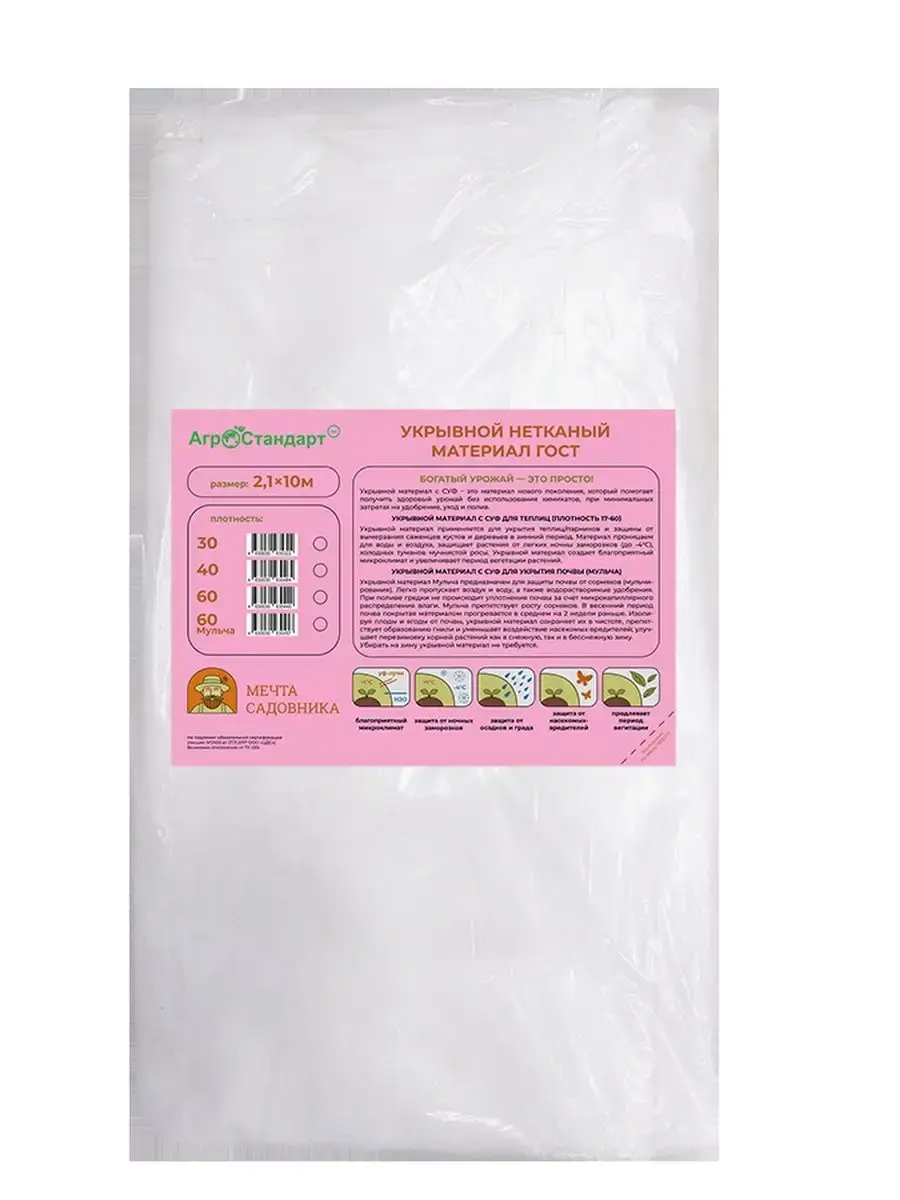 Укрывной материал АгроСтандарт плот. 60 (ширина 2,1 м, длина 10 м)
