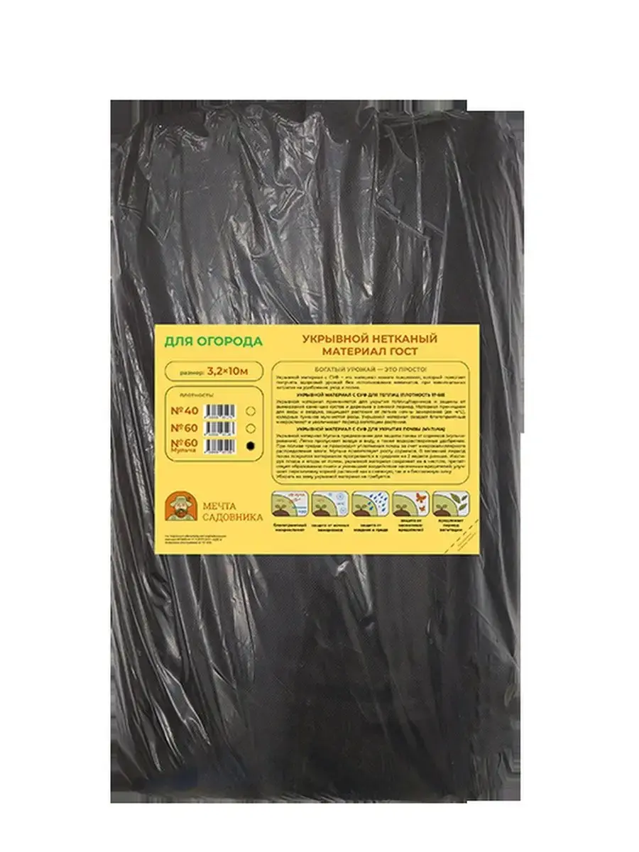 Укрывной материал для огорода мульча № 60 (ширина 3,2м, длина 10м)