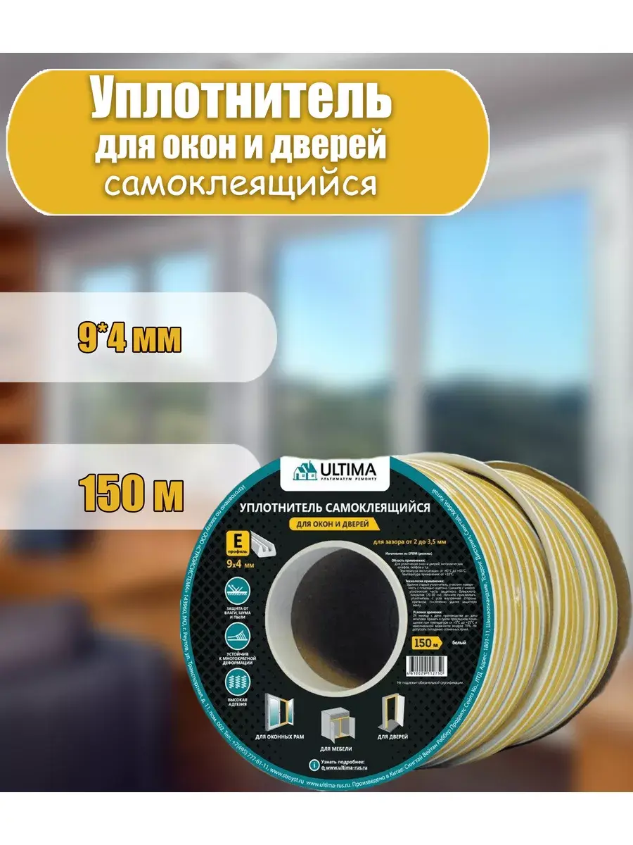 Профессиональный уплотнитель Ultima изготовлен из резины EPDM с акриловым клеящим слоем. Благодаря своей мягкости и способности восстанавливаться после сжатия, он обеспечивает надежное уплотнение. Утеплитель легко нарезается на нужные размеры и применяется для заполнения зазоров и швов с целью предотвращения проникновения холодного воздуха, пыли, влаги и шума.