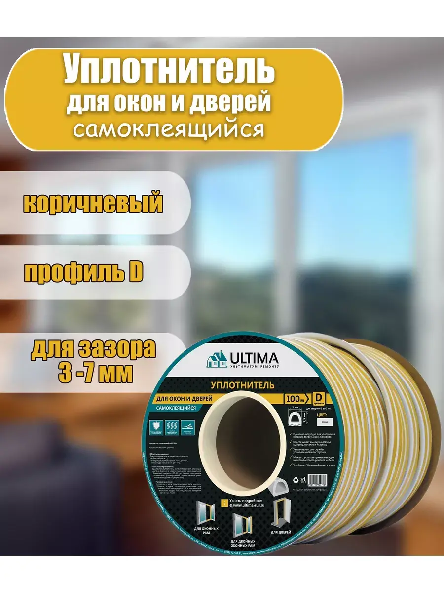 Профессиональный уплотнитель Ultima изготовлен из резины EPDM с акриловым клеящим слоем. Благодаря своей мягкости и способности восстанавливаться после сжатия, он обеспечивает надежное уплотнение. Утеплитель легко нарезается на нужные размеры и применяется для заполнения зазоров и швов с целью предотвращения проникновения холодного воздуха, пыли, влаги и шума.