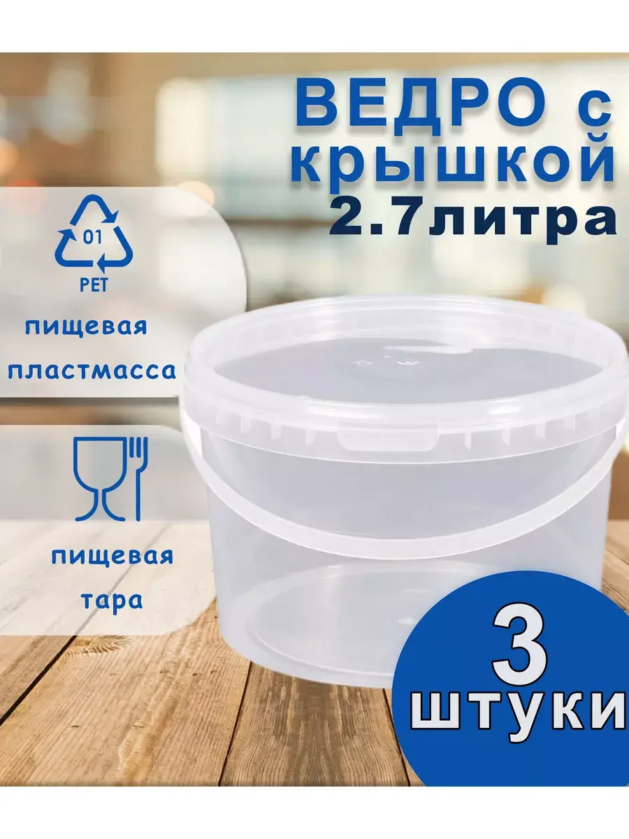 Ведро пластиковое с плотно прилегающей крышкой и удобной пластиковой ручкой объемом 2,75 л для дома и дачи. Ведерко изготовлено из экологически чистого полипропилена (пищевого пластика), поэтому может быть использовано для пищевых продуктов, в хозяйстве и быту, а также в строительных целях. Ведро оснащено короной жёсткости и пломбой первого вскрытия. Материал пластикового контейнера устойчив к воздействию высоких и низких температур, благодаря этому ведро может применяться в производстве. Пищевое ведро может быть использовано как ведро для сбора ягод фруктов овощей и плодов вашего урожая на даче. Пищевой контейнер применяется как кадка для засолки квашения капусты маринования огурчиков консервирования грибов рыбы хранения различных салатов, как ёмкость для мёда и продуктов пчеловодства. Контейнер для хранения майонеза кетчупа мороженого варенья. На кухне пластиковое ведро отлично подойдет для хранения бакалеи круп бобовых муки и иных сыпучих продуктов. Ведро пластмассовое используют для заморозки ягод на зиму, а также в качестве ящика для хранения картошки или, как ведро для воды. Широкое распространение ведро пластиковое с крышкой имеет и в туристических целях для рыбалки и для шашлыка. Благодаря герметично закрывающейся крышке, ведерко декоративное можно использовать как контейнер для хранения лекарств и медикаментов.
