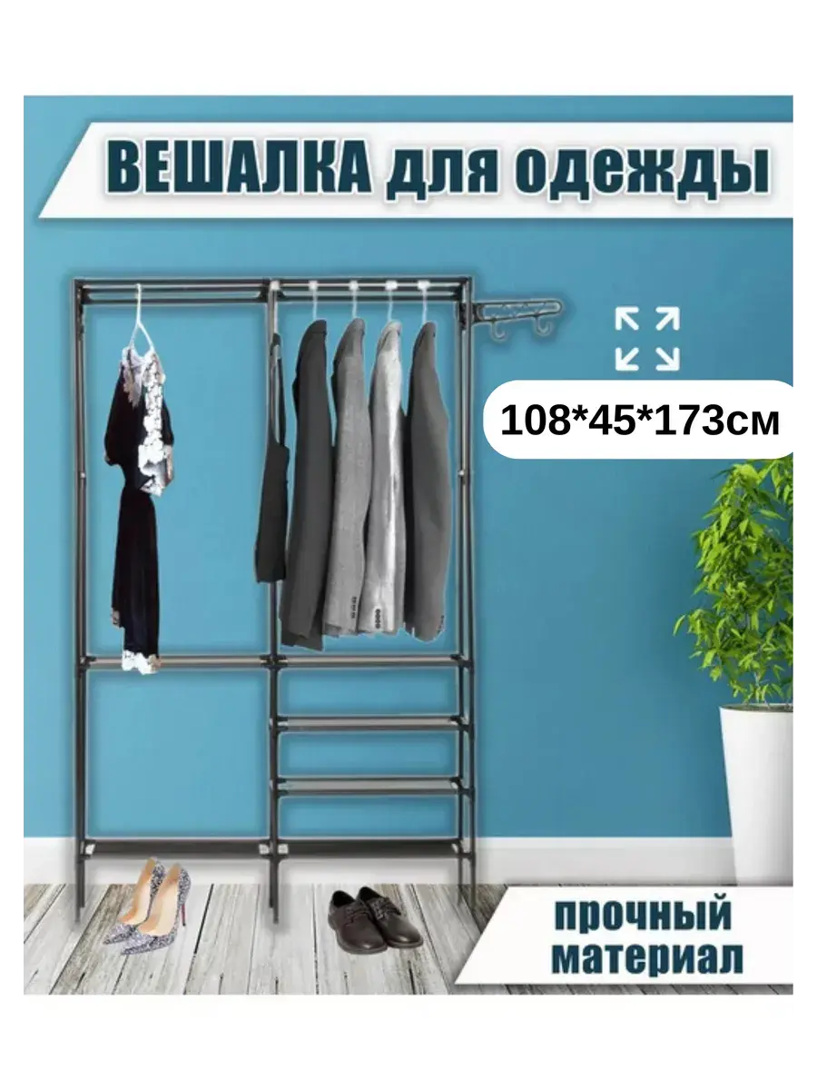 В любой момент мебель можно разобрать и переместить в другое место, что удобно во время праздника, вечеринки, ремонта или переезда. Стойку для одежды напольную можно взять с собой на природу, кемпинг. 108*45*173 см. Максимальная нагрузка до 15 кг.