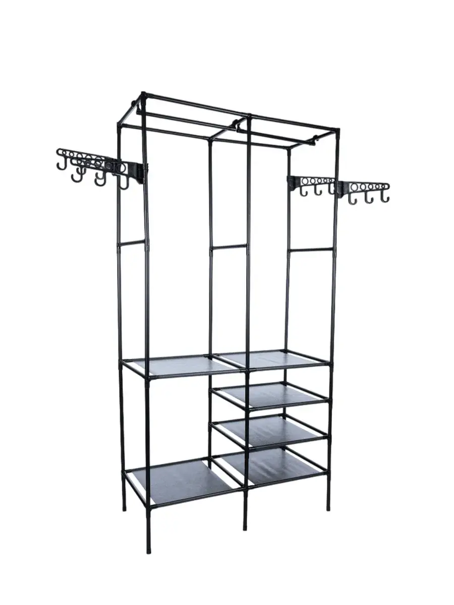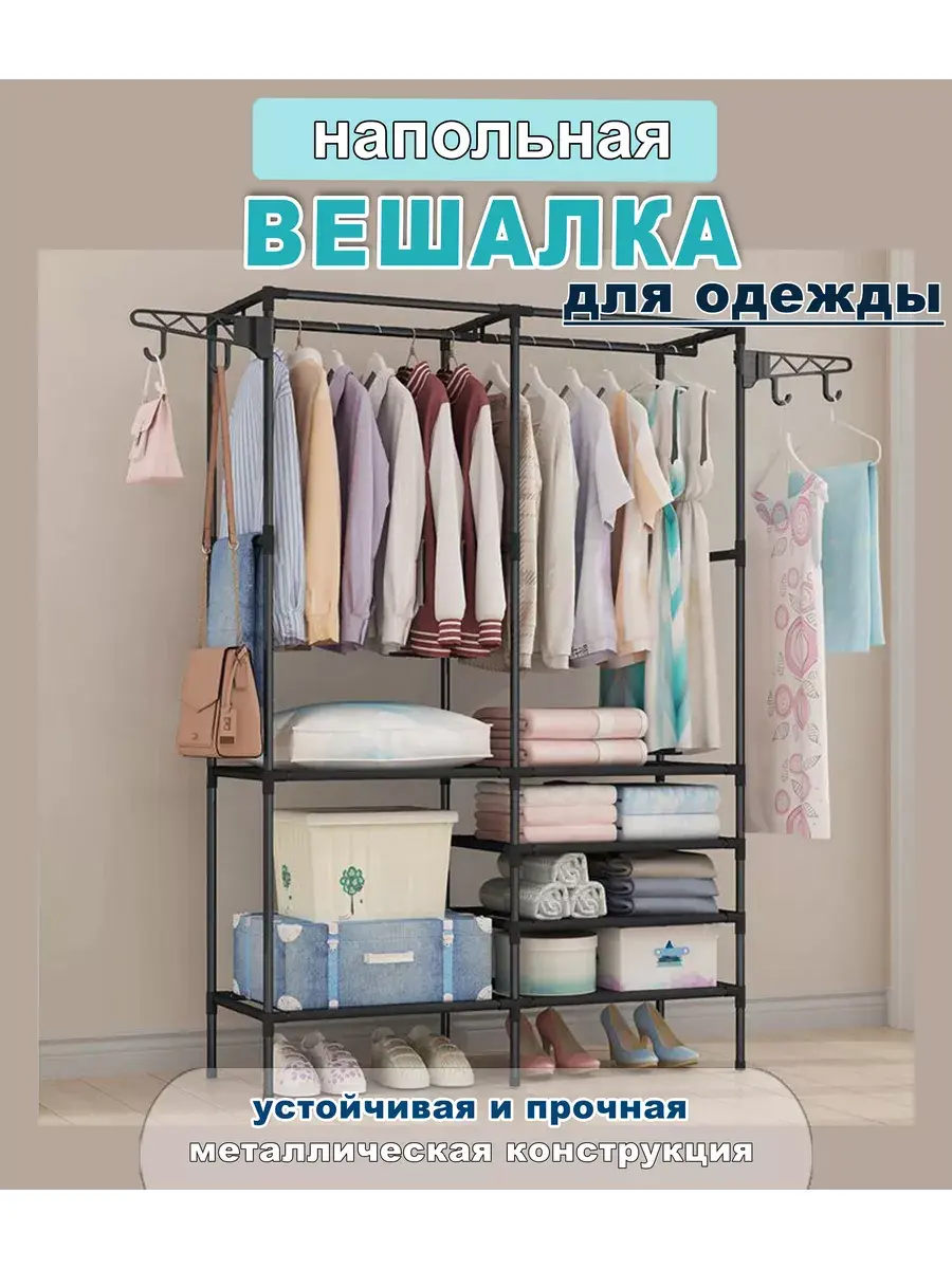 В любой момент мебель можно разобрать и переместить в другое место, что удобно во время праздника, вечеринки, ремонта или переезда. Стойку для одежды напольную можно взять с собой на природу, кемпинг. 108*45*173 см. Максимальная нагрузка до 15 кг.