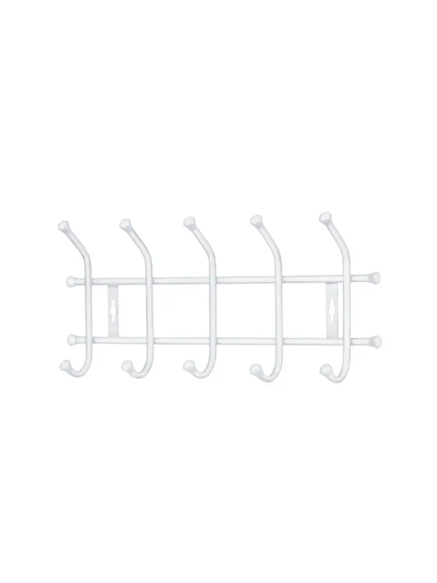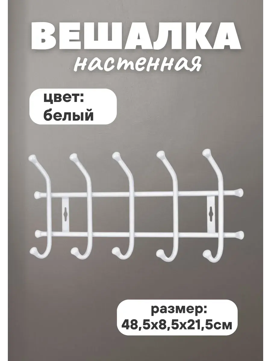 Вешалка настенная Nika — практичное решение для хранения одежды в прихожей, спальне или гардеробной. Ее компактные размеры (48,5х8,5х21,5 см) позволяют разместить ее даже в небольших помещениях, не занимая много места. Пять прочных металлических рожков обеспечивают удобное размещение различных предметов гардероба, от пальто и курток до рубашек и платьев. Белый цвет вешалки гармонично впишется в любой интерьер, добавляя ему аккуратности и порядка.