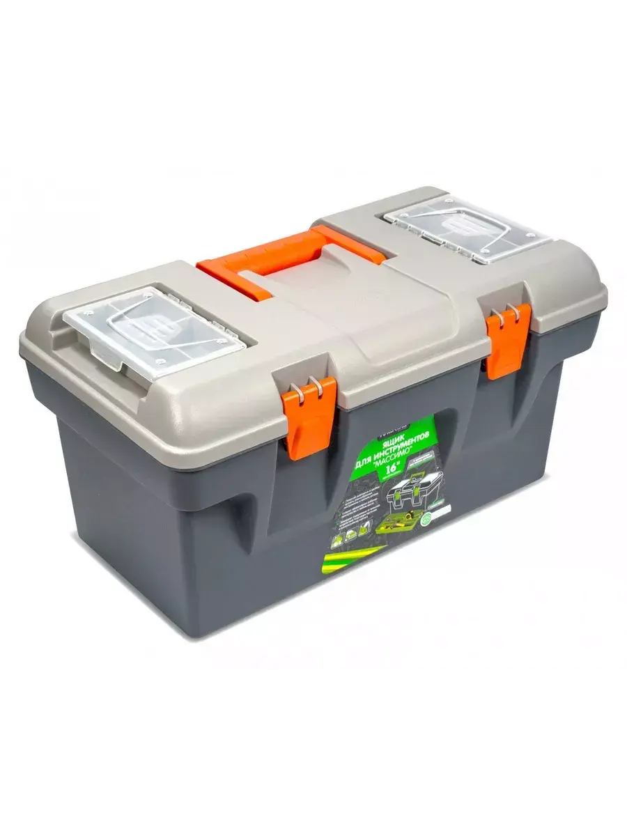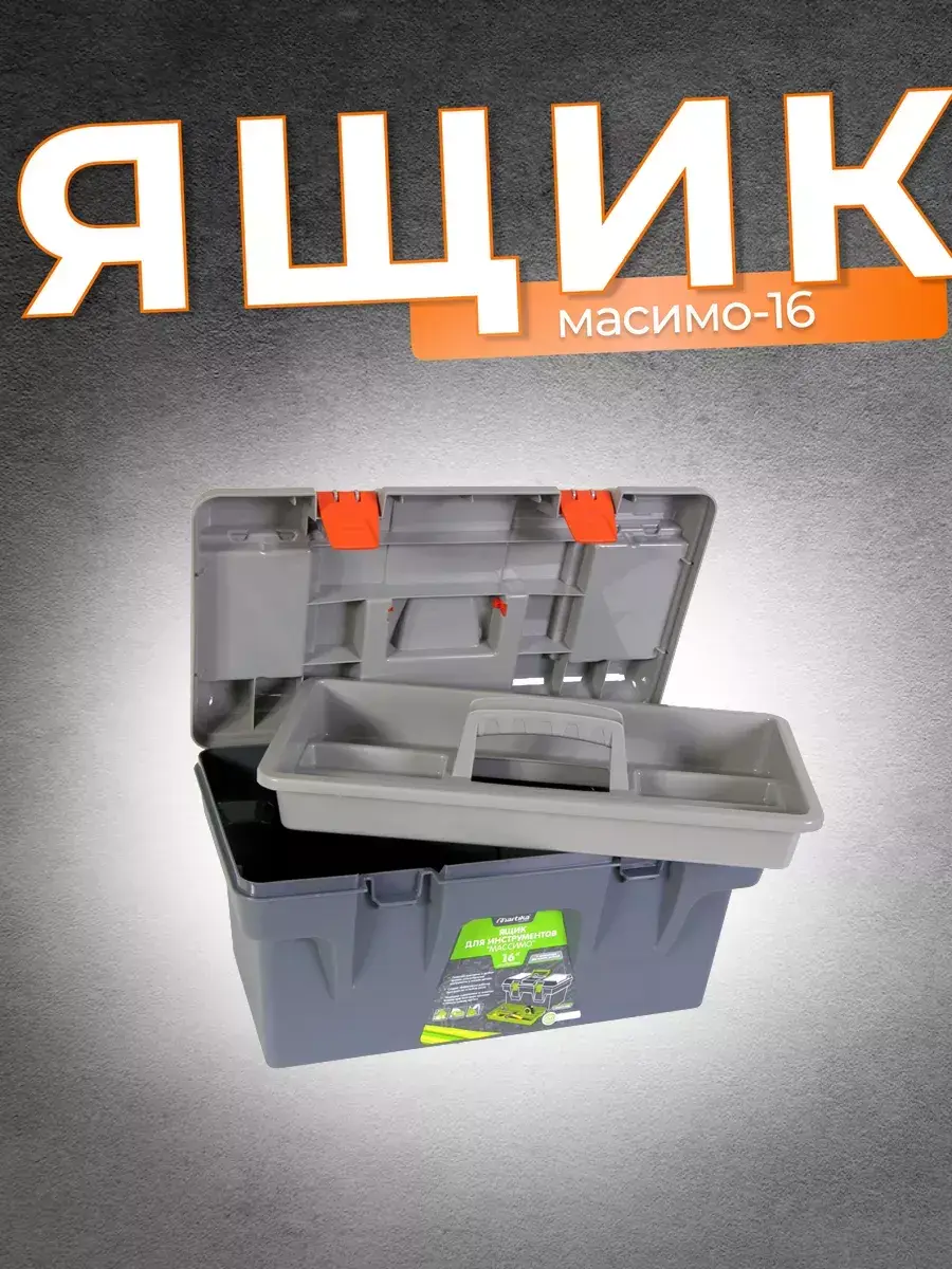Ящик для инструментов Массимо объемом 16 литров - это простое и функциональное решение для хранения ваших инструментов. С размерами 408 мм в длину, 218 мм в ширину и 223 мм в высоту, этот ящик обладает оптимальными размерами для удобного хранения различных инструментов.