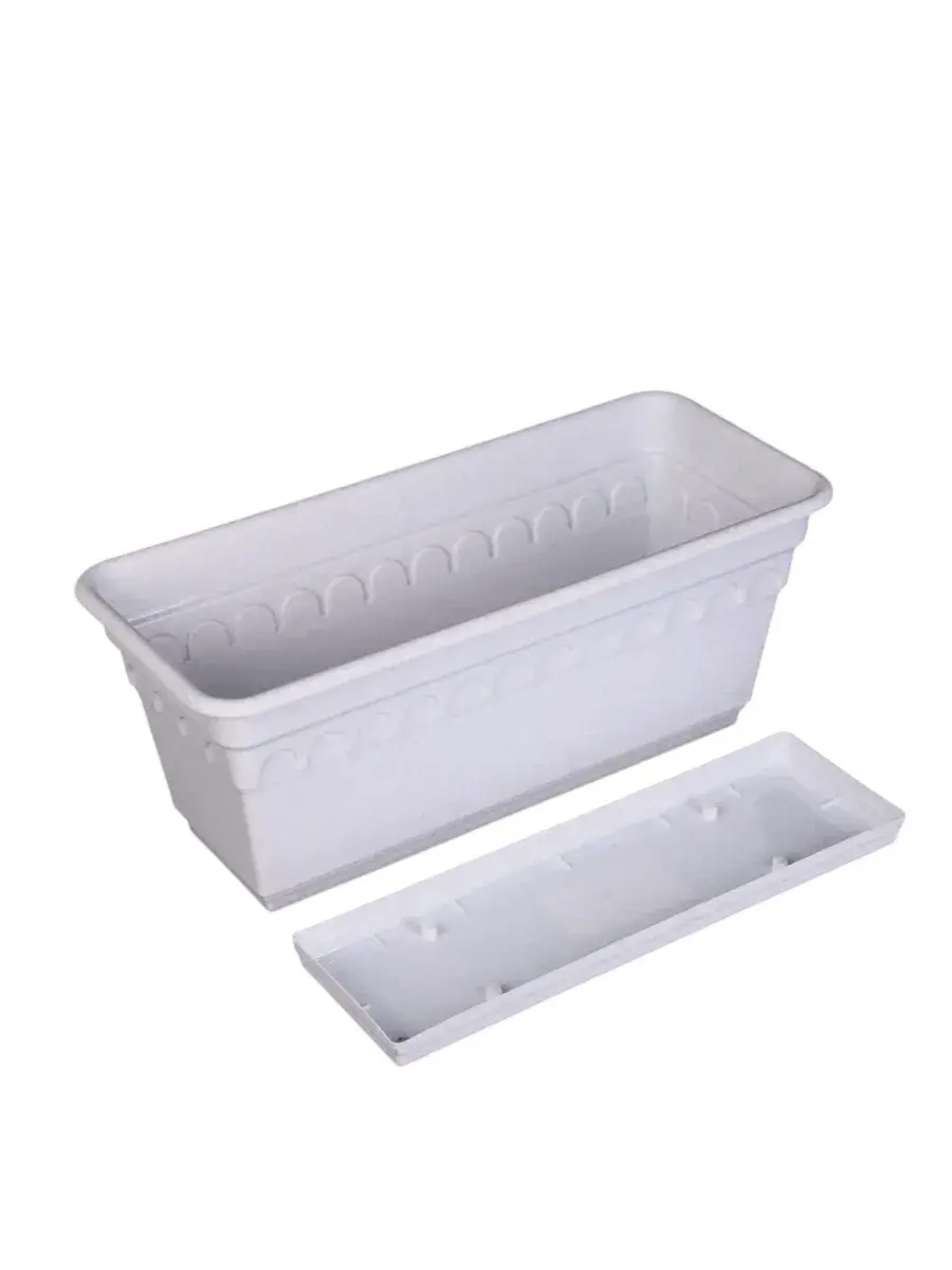 Прямоугольный пластиковый ящик для цветов с поддоном. Балконное кашпо подойдет для использования дома, на балконе, в саду. В него можно посадить цветы, ампельные растения, суккуленты, кактусы, семена салата и любую другую рассаду. Ящик подойдет для выращивания рассады. Компактные и легкие пластиковые ящики для цветов подходят для выращивания растений как в интерьерном, так и ландшафтном дизайне. На дне отмечены места для дренажных отверстий, которые можно проделать острым горячим предметом. Дренажные отверстия в донной части и наличие поддона помогают избавиться от излишка влаги в почве, предотвращая гниение корневой системы. Пластиковые цветочные горшки - это практично и удобно. Легко мыть, переносить за бортик с места на место. Они прочные и надежные. Прослужат долго. Сделано в России.