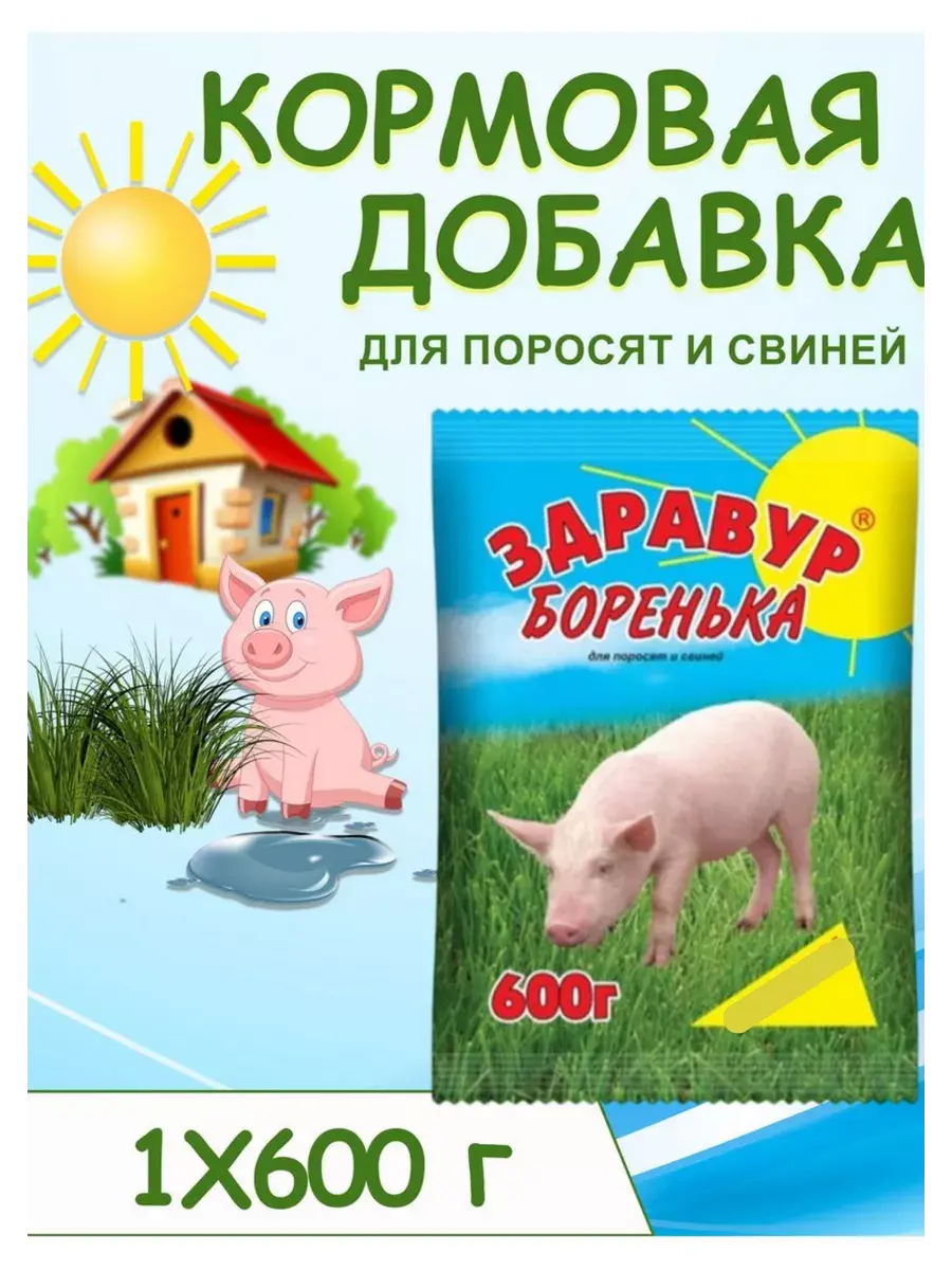 Премикс Здравур для поросят и свиней "Боренька", 2 уп. по 600г. (1,2 кг) Кормовая добавка Здравур "Боренька» обеспечивает организм поросят всеми необходимыми витаминами, микроэлементами, а также аминокислотами; улучшает обмен веществ, пищеварение, кроветворение. Поросята благодаря ей растут быстрее: привесы на 2–3 кг в месяц больше, чем без добавок. Повышается иммунитет животных, исключаются авитаминозы и паракератоз. У поросят улучшается аппетит, они становятся веселыми и бодрыми. Только добавки «Здравур» содержат кормовые ферменты, превращающие трудноперевариваемые питательные вещества в легкоусвояемую форму. Благодаря этому корма усваиваются лучше и расходуются экономнее. Поросята со «Здравуром Боренька» быстрее откармливаются, а мясо у них получается более вкусным. Эта добавка не содержит антибиотиков, гормонов, ГМО и других опасных для здоровья человека веществ. «Здравур Боренька» позволяет получить при выращивании каждого поросенка до 20 кг мяса сверх «плана»! Затраты на приобретение этой добавки окупаются десятикратно! Состав: 8 витаминов, 7 микроэлементов, специальный комплекс аминокислот и ферментов. Способ применения: ежедневно перед утренним кормлением добавить премикс, согласно норм расхода, в свежеприготовленный корм и перемешать. Нормы расхода: Возраст поросенка 60–90 дней, норма - 12 г/день; Возраст поросенка 90–120 дней, норма - 15 г/день; Возраст поросенка 120–150 дней, норма - 18 г/день; Возраст поросенка 150–210 дней, норма - 20 г/день; Возраст поросенка старше 210 дней, норма - 25 г/день;