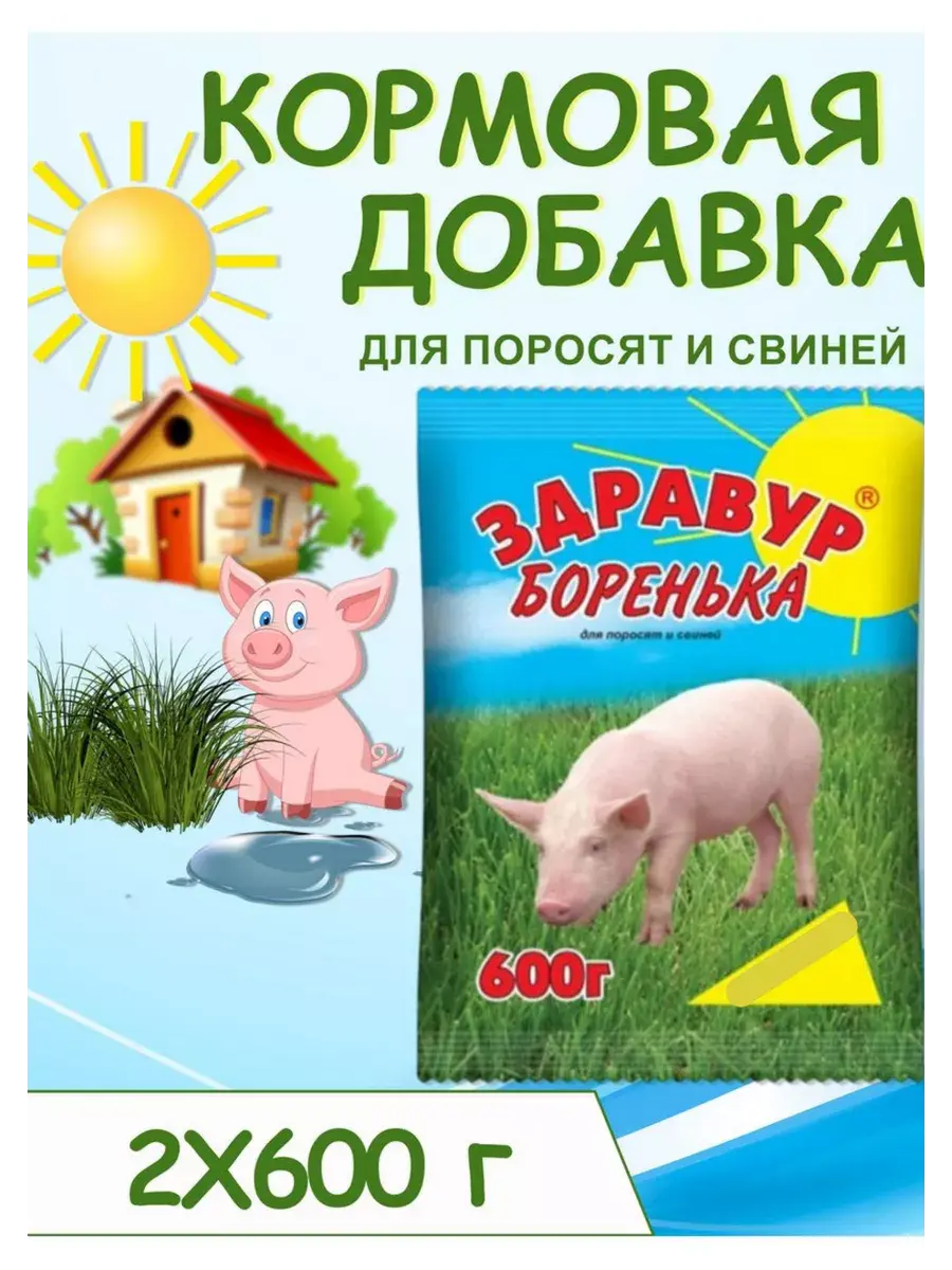 Премикс Здравур для поросят и свиней "Боренька", 2 уп. по 600г. (1,2 кг) Кормовая добавка Здравур "Боренька» обеспечивает организм поросят всеми необходимыми витаминами, микроэлементами, а также аминокислотами; улучшает обмен веществ, пищеварение, кроветворение. Поросята благодаря ей растут быстрее: привесы на 2–3 кг в месяц больше, чем без добавок. Повышается иммунитет животных, исключаются авитаминозы и паракератоз. У поросят улучшается аппетит, они становятся веселыми и бодрыми. Только добавки «Здравур» содержат кормовые ферменты, превращающие трудноперевариваемые питательные вещества в легкоусвояемую форму. Благодаря этому корма усваиваются лучше и расходуются экономнее. Поросята со «Здравуром Боренька» быстрее откармливаются, а мясо у них получается более вкусным. Эта добавка не содержит антибиотиков, гормонов, ГМО и других опасных для здоровья человека веществ. «Здравур Боренька» позволяет получить при выращивании каждого поросенка до 20 кг мяса сверх «плана»! Затраты на приобретение этой добавки окупаются десятикратно! Состав: 8 витаминов, 7 микроэлементов, специальный комплекс аминокислот и ферментов. Способ применения: ежедневно перед утренним кормлением добавить премикс, согласно норм расхода, в свежеприготовленный корм и перемешать. Нормы расхода: Возраст поросенка 60–90 дней, норма - 12 г/день; Возраст поросенка 90–120 дней, норма - 15 г/день; Возраст поросенка 120–150 дней, норма - 18 г/день; Возраст поросенка 150–210 дней, норма - 20 г/день; Возраст поросенка старше 210 дней, норма - 25 г/день;