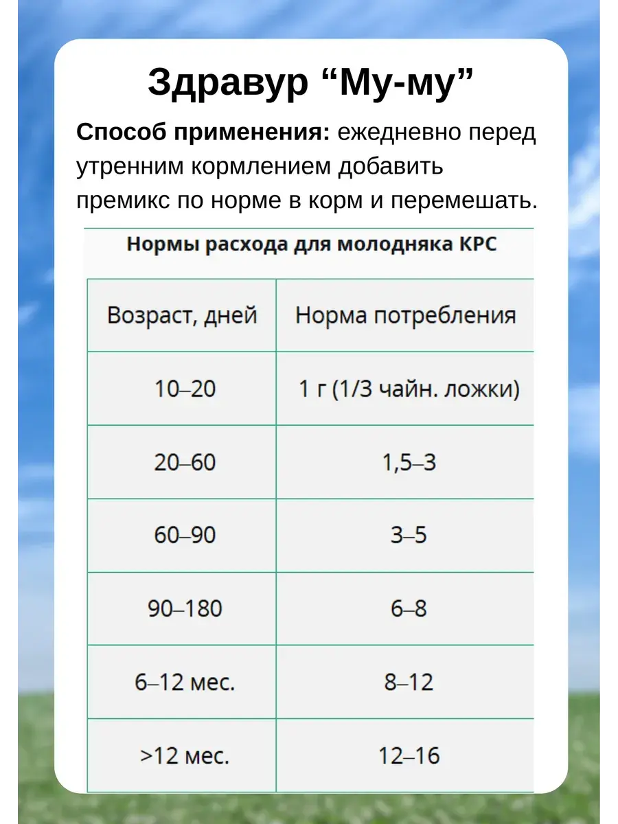 Здравур "Му-Му" для коров и телят 600гр – высококачественная кормовая добавка, специально разработанная для обеспечения здорового и сбалансированного питания коров и телят. Каждая упаковка весом 600 грамм предлагает надежное решение для поддержания оптимального здоровья и производительности вашего скота.Состав "Здравура" обогащен важными питательными веществами, необходимыми для корректного развития и функционирования коров и телят. Он содержит оптимальное сочетание белков, витаминов и минералов, способствующих нормальному росту, метаболизму и иммунной системе животного. "Здравур" легко сочетается с основным рационом скота и обеспечивает полноценное питание во всех физиологических стадиях. Он способствует лучшему усвоению корма, укрепляет общую состояние здоровья животных и повышает их сопротивляемость к различным болезням. Кормовая добавка "Здравур" тщательно протестирована и сертифицирована, гарантируя безопасность и эффективность. Упаковка весом 600 грамм обеспечивает удобство использования, точное дозирование и длительный срок годности.Позаботьтесь о здоровье и благополучии вашего скота с помощью кормовой добавки "Здравур"! Она поможет сохранить животных сильными, здоровыми и продуктивными