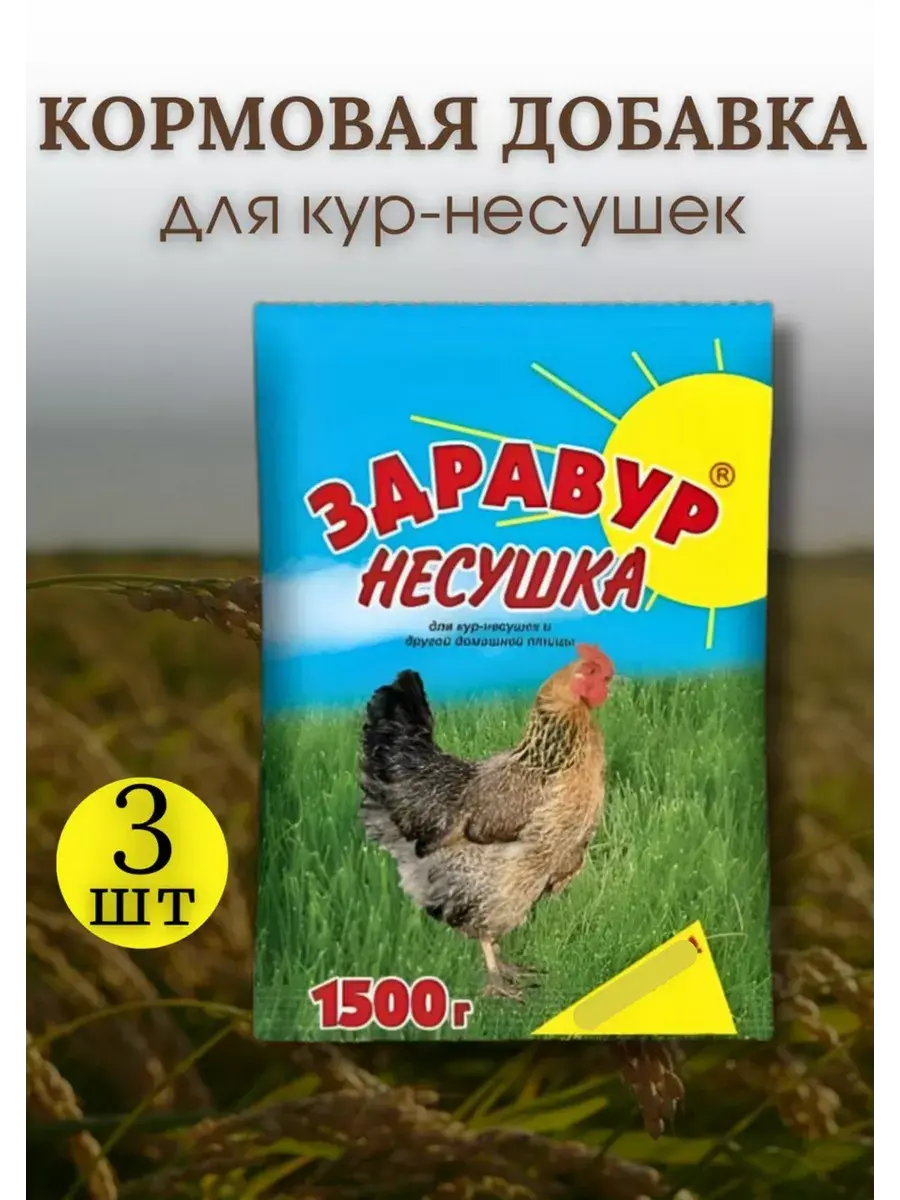 Кормовая добавка премикс «Здравур Несушка» содержит 11 витаминов (А, Д3, Е, В2, В3, В4, В5, В6, В12, К, Н), 7 микроэлементов, незаменимые аминокислоты и ферменты. Она разработана с учетом условий содержания и кормления кур на личных подворьях и все необходимые вещества содержит в нужном количестве и правильном соотношении. Добавка «Здравур Несушка» укрепляет здоровье кур, защищает от заболеваний: авитаминоза, обезноживания, каннибализма. У кур улучшается аппетит, состояние перьевого покрова, они становятся бодрыми и веселыми. Элементы, содержащиеся в «Здравур Несушке», активизируют обменные процессы в организме кур, именно поэтому уже через 7–10 дней Вы увидите реальный результат — яйценоскость кур повысится, скорлупа станет прочнее. Кроме того, «Здравур Несушка» помогает сэкономить корма! Специальные кормовые ферменты, содержащиеся в ней, повышают усвоение организмом питательных веществ из корма. Благодаря этому ни один грамм кормов не тратится зря! «Здравур Несушка» очень выгодна в применении: курице в день требуется всего 1 г добавки, а прибавка яиц составит до 5–6 штук в неделю. Добавка «Здравур Несушка» не содержит антибиотиков, ГМО, химических стимуляторов роста, поэтому яйца остаются такими же «чистыми», вкусными и полезными, как при кормлении только обычными кормами. «Здравур Несушка» — чтобы куры неслись как следует! Способ применения: премикс перемешать с кормом из расчета 1 г на 1 курицу в сутки и давать курам ежедневно. Результат вы увидите очень быстро: уже через 7–10 дней после начала применения ваши куры преобразятся и станут нестись гораздо лучше. Примечание: 1 столовая ложка 8–10 г, 1 чайная ложка 3–5 г. Нормы расхода: суточная доза на 1 птицу, куры — 1 г, утки — 2 г, гуси и индейки — 3 г, перепела 0,2 г