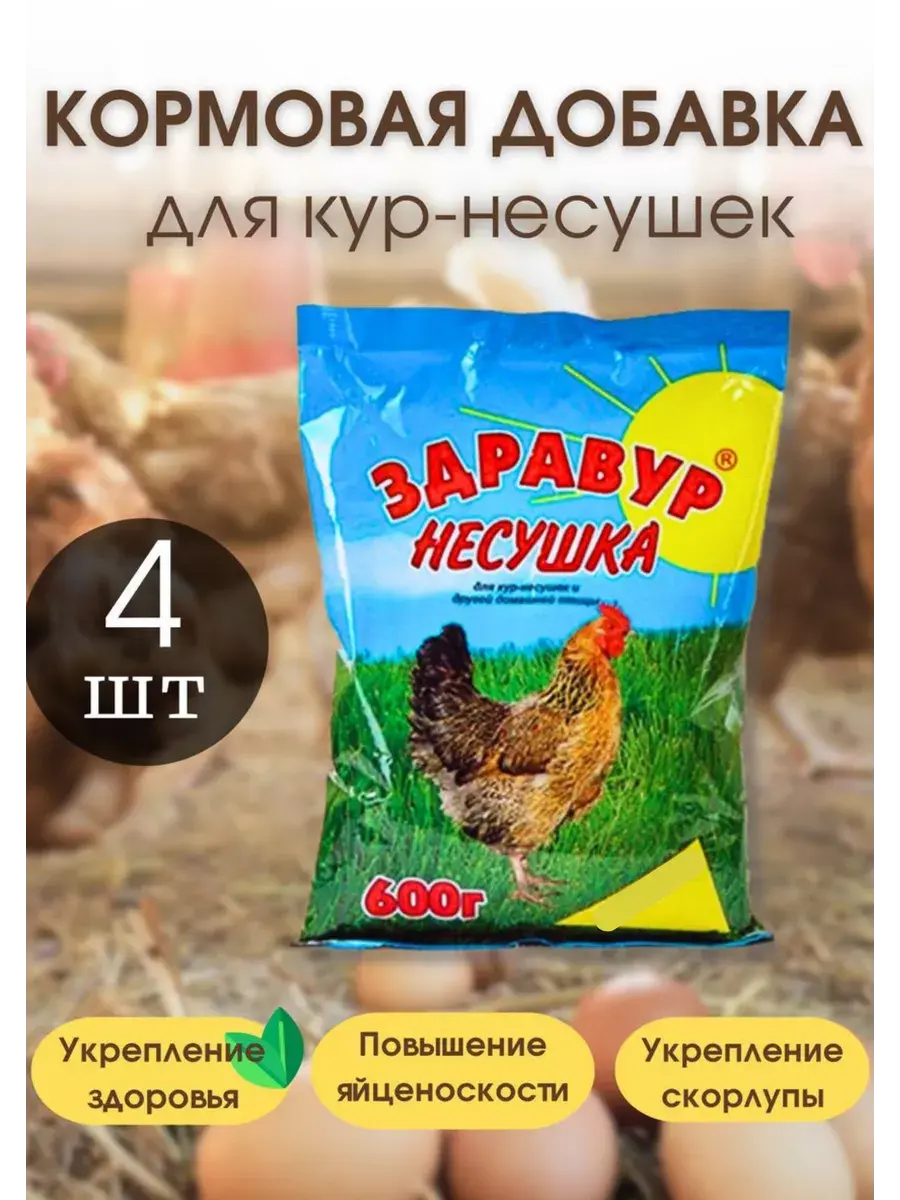 Кормовая добавка премикс «Здравур Несушка» содержит 11 витаминов (А, Д3, Е, В2, В3, В4, В5, В6, В12, К, Н), 7 микроэлементов, незаменимые аминокислоты и ферменты. Она разработана с учетом условий содержания и кормления кур на личных подворьях и все необходимые вещества содержит в нужном количестве и правильном соотношении. Добавка «Здравур Несушка» укрепляет здоровье кур, защищает от заболеваний: авитаминоза, обезноживания, каннибализма. У кур улучшается аппетит, состояние перьевого покрова, они становятся бодрыми и веселыми. Элементы, содержащиеся в «Здравур Несушке», активизируют обменные процессы в организме кур, именно поэтому уже через 7–10 дней Вы увидите реальный результат — яйценоскость кур повысится, скорлупа станет прочнее. Кроме того, «Здравур Несушка» помогает сэкономить корма! Специальные кормовые ферменты, содержащиеся в ней, повышают усвоение организмом питательных веществ из корма. Благодаря этому ни один грамм кормов не тратится зря! «Здравур Несушка» очень выгодна в применении: курице в день требуется всего 1 г добавки, а прибавка яиц составит до 5–6 штук в неделю. Добавка «Здравур Несушка» не содержит антибиотиков, ГМО, химических стимуляторов роста, поэтому яйца остаются такими же «чистыми», вкусными и полезными, как при кормлении только обычными кормами. «Здравур Несушка» — чтобы куры неслись как следует! Способ применения: премикс перемешать с кормом из расчета 1 г на 1 курицу в сутки и давать курам ежедневно. Результат вы увидите очень быстро: уже через 7–10 дней после начала применения ваши куры преобразятся и станут нестись гораздо лучше. Примечание: 1 столовая ложка 8–10 г, 1 чайная ложка 3–5 г. Нормы расхода: суточная доза на 1 птицу, куры — 1 г, утки — 2 г, гуси и индейки — 3 г, перепела 0,2 г