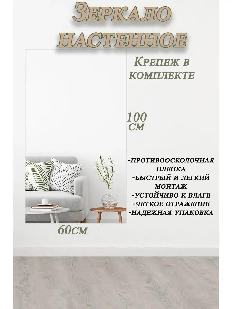 Прямоугольное настенное зеркало без рамы станет прекрасным дополнением в любой комнате вашем доме. Оно представляет собой полотно 60 на 100см (60 х 100см), с еврокромкой с креплением. Благодаря своему стильному дизайну оно станет ярким акцентом в вашем интерьере, визуально увеличит пространство и наполнит ваше помещение светом. Настенное зеркало с крепежом в комплекте имеет все необходимое для простой и быстрой установки. Вы сможете легко прикрепить его к стене без лишних усилий. зеркало выполнено из прочного материала, который обеспечивает надежность и долговечность изделия. Оно идеально впишется в интерьер. Благодаря своей универсальности, оно подходит для любого помещения и поможет создать уютную атмосферу в вашем доме. Зеркало с еврокромкой имеет полированные края, абсолютно безопасные за счет сглаженной поверхности. Влагостойкое зеркало подходит для ванной комнаты, коридора, спальни, прихожей, гостиной подойдёт для загородного коттеджа, обустройства детской комнаты и кабинета. Наши зеркала упакованы очень надежно, упаковка проходила испытание на прочность при падении с разных углов.Изготовлено в России с использованием качественных материалов. Крепёж данной модели прочная фурнитура, выдерживающая вес зеркала с еврокромкой входит в комплект. Влагостойкое зеркало подходит для ванной комнаты, коридора, спальни, прихожей, гостиной. Дизайнерское зеркало подойдёт для загородного коттеджа, обустройства детской комнаты и кабинета. В каталоге нашего магазина вы можете выбрать зеркала диаметром d-40см, d-50см,d-60см,d-70см, а так же прямоугольные зеркала размером 60на100 (60х100) ,40 на 100 (40х100),50на100 (50х100) ,45 на 100 (45х100).