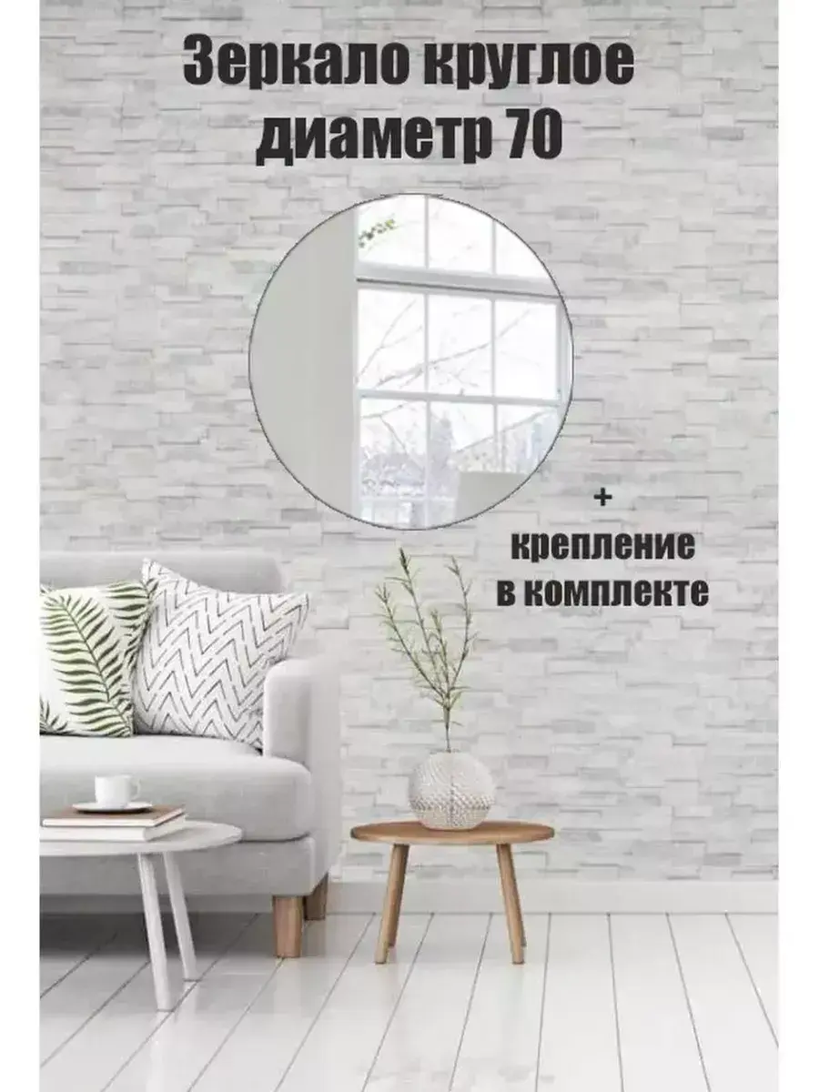 Универсальное круглое зеркало настенное без рамы станет прекрасным дополнением к любой комнате в вашем доме. Оно представляет собой круглое полотно диаметром 70см, которое идеально подходит для ванной комнаты, спальни, прихожей и других помещений. Благодаря своему стильному дизайну оно станет ярким акцентом в вашем интерьере, визуально увеличит пространство и наполнит ваше помещение светом. Настенное зеркало с крепежом в комплекте имеет все необходимое для простой и быстрой установки. Вы сможете легко прикрепить его к стене без лишних усилий. зеркало выполнено из прочного материала, который обеспечивает надежность и долговечность изделия. Оно идеально впишется в интерьер. Благодаря своей универсальности, оно подходит для любого помещения и поможет создать уютную атмосферу в вашем доме. Зеркало с еврокромкой имеет полированные края, абсолютно безопасные за счет сглаженной поверхности. Влагостойкое зеркало подходит для ванной комнаты, коридора, спальни, прихожей, гостиной подойдёт для загородного коттеджа, обустройства детской комнаты и кабинета. Наши зеркала упакованы очень надежно, упаковка проходила испытание на прочность при падении с разных углов.Изготовлено в России с использованием качественных материалов. Крепёж данной модели прочная фурнитура, выдерживающая вес зеркала с еврокромкой входит в комплект. Влагостойкое зеркало подходит для ванной комнаты, коридора, спальни, прихожей, гостиной. Дизайнерское зеркало подойдёт для загородного коттеджа, обустройства детской комнаты и кабинета. В каталоге нашего магазина вы можете выбрать зеркала диаметром d-40см, d-50см,d-60см,d-70см, а так же прямоугольные зеркала размером 60на100 (60х100) ,40 на 100 (40х100),50на100 (50х100) ,45 на 100 (45х100).